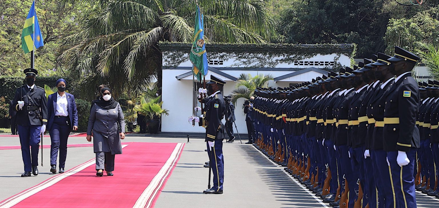 Rais wa Rwanda Mhe. Paul Kagame akimtambulisha Rais wa Jamhuri ya Muungano wa Tanzania Mhe. Samia Suluhu Hassan, kwa Viongozi mbalimbali wa Serikali yake alipowasili Ikulu Kigali Rwanda Leo Agosti 02,2021 kwa ajili ya kuanza ziara ya kiserikali ya Siku mbili kwa mwaliko wa Rais Kagame.