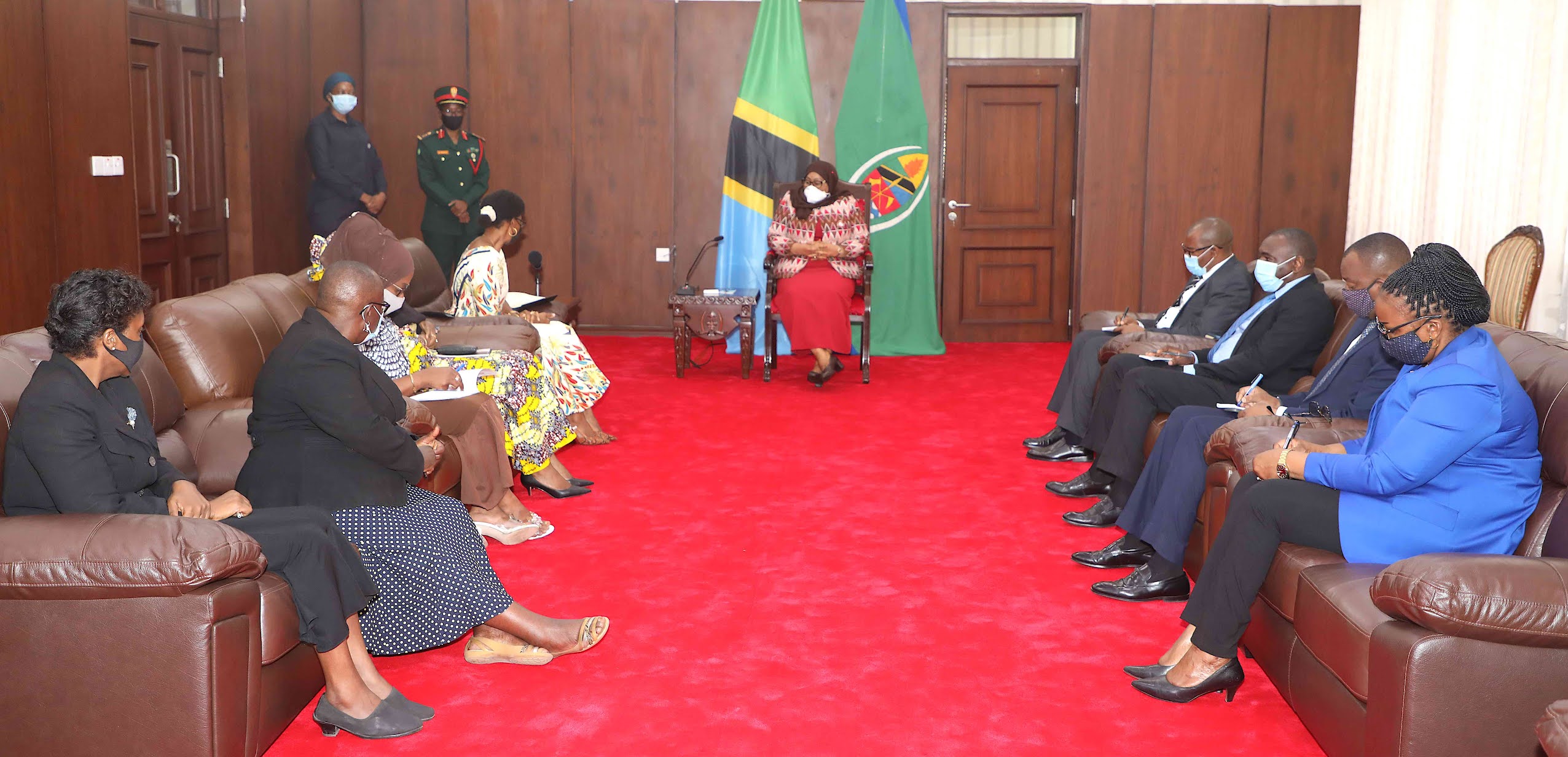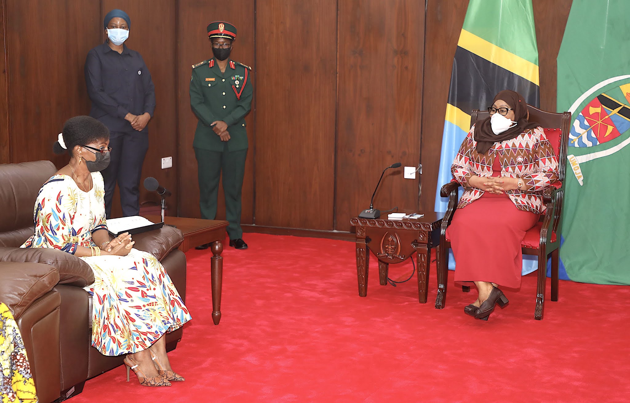 Rais wa Jamhuri ya Muungano wa Tanzania Mhe. Samia Suluhu Hassan, akizungumza na Mwenyekiti wa Chama cha Majaji na Mahakimu Wanawake Tanzania (TAWJA) Jaji Joaquine De-Mello, wakati alipoongoza Ujumbe wa Chama hicho, Ikulu Chamwino mkoani Dodoma leo tarehe 11 Agosti, 2021.