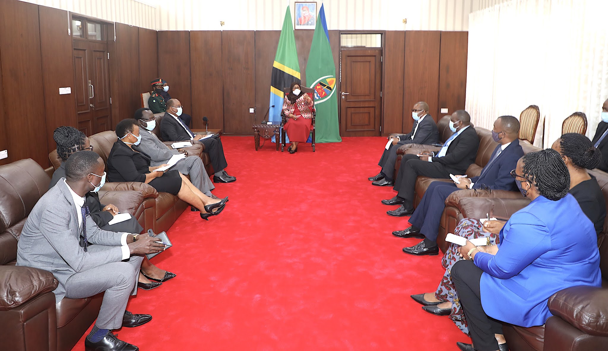 Rais wa Jamhuri ya Muungano wa Tanzania Mhe. Samia Suluhu Hassan akizungumza na Ujumbe wa Chama cha Wanasheria Tanganyika (TLS) ulioongozwa na Rais wa Chama hicho Profesa Edward Hoseah, wakati Ujumbe huo ulipofika Ikulu Chamwino mkoani Dodoma leo tarehe 11 Agosti, 2021.