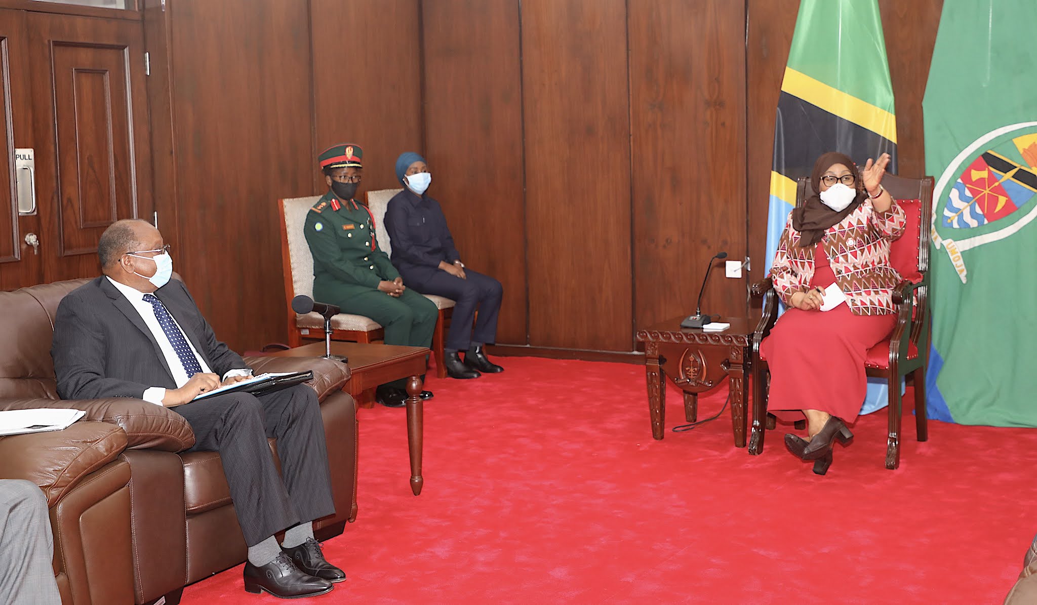 Rais wa Jamhuri ya Muungano wa Tanzania Mhe. Samia Suluhu Hassan akizungumza na Rais wa Chama cha Wanasheria Tanganyika (TLS) Profesa Edward Hoseah wakati Ujumbe wa Chama hicho ulipofika Ikulu Chamwino Jijini Dodoma leo tarehe 11 Agosti, 2021.