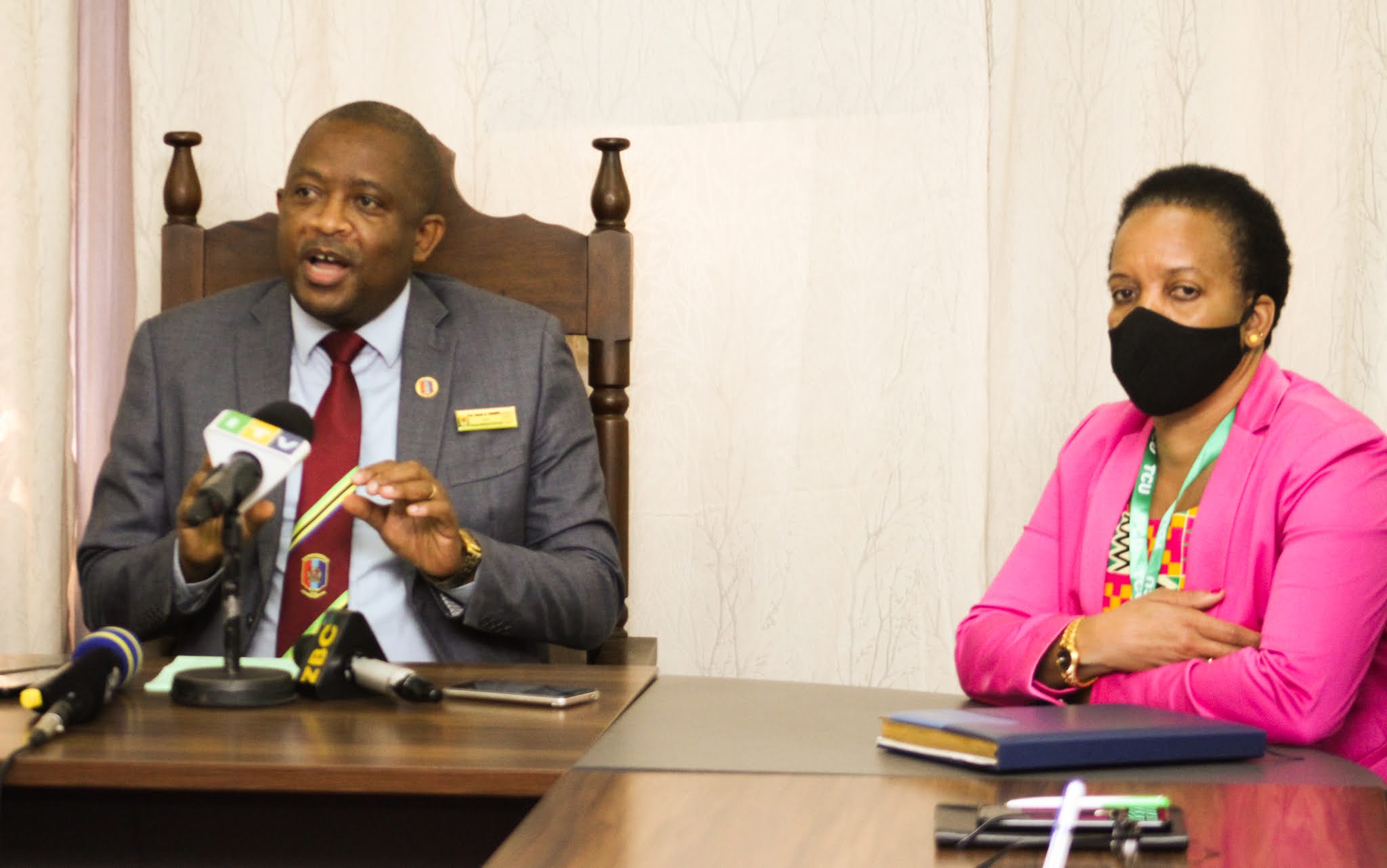 Katibu Mtendaji wa Tume ya Vyuo Vikuu Tanzania (TCU) Profesa Charles Kihampa akizungumza na waandishi wa habari (hawamo pichani) katika mkutano wake uliofanyika kwenye Ofisi za Tume hiyo Jijini Dar es Salaam leo Agosti 23,2021. (PICHA NA: HUGHES DUGILO)