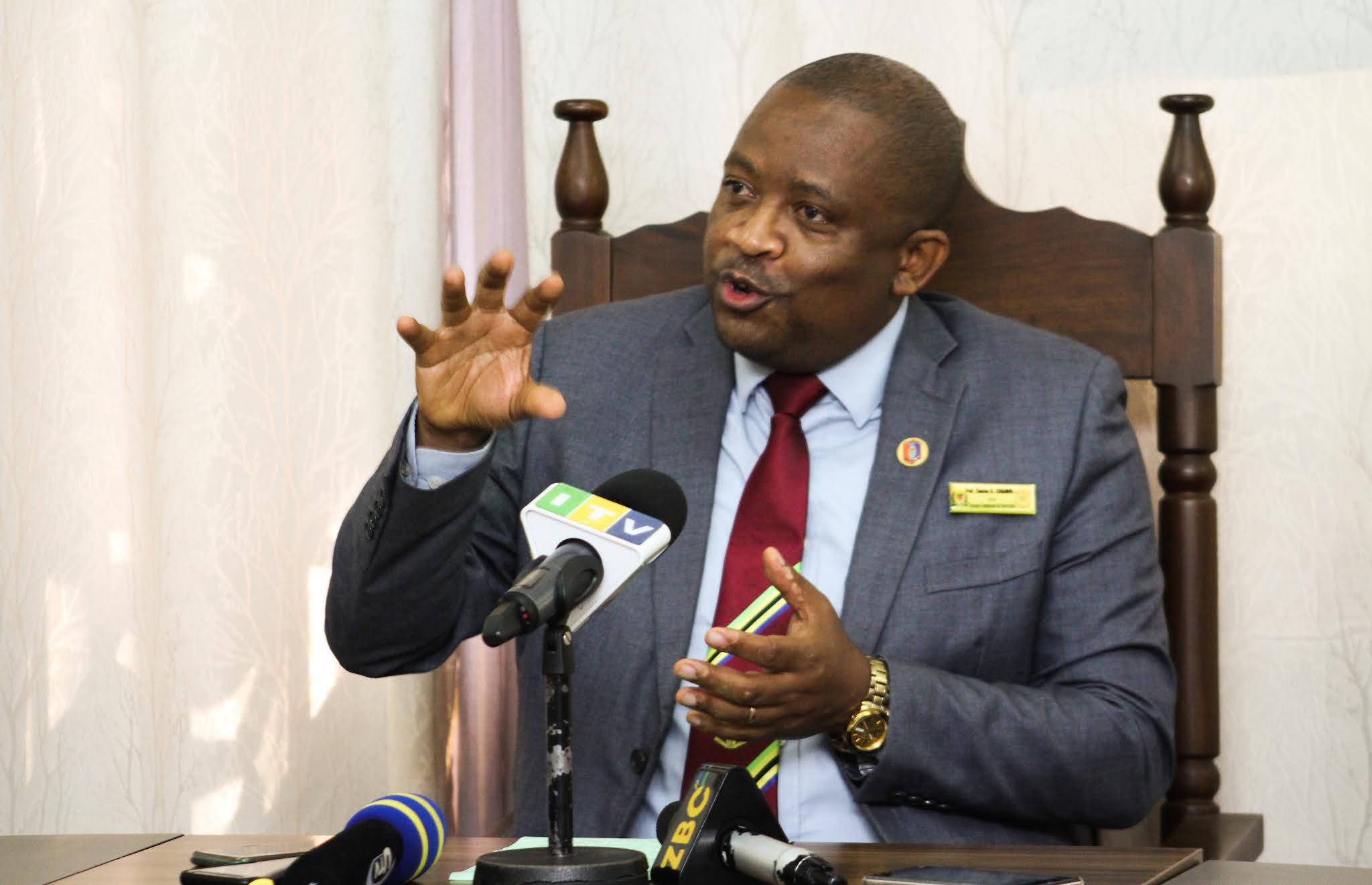 Katibu Mtendaji wa Tume ya Vyuo Vikuu Tanzania (TCU) Profesa Charles Kihampa akizungumza na waandishi wa habari (hawamo pichani) katika mkutano wake uliofanyika kwenye Ofisi za Tume hiyo Jijini Dar es Salaam leo Agosti 23,2021. (PICHA NA: HUGHES DUGILO)