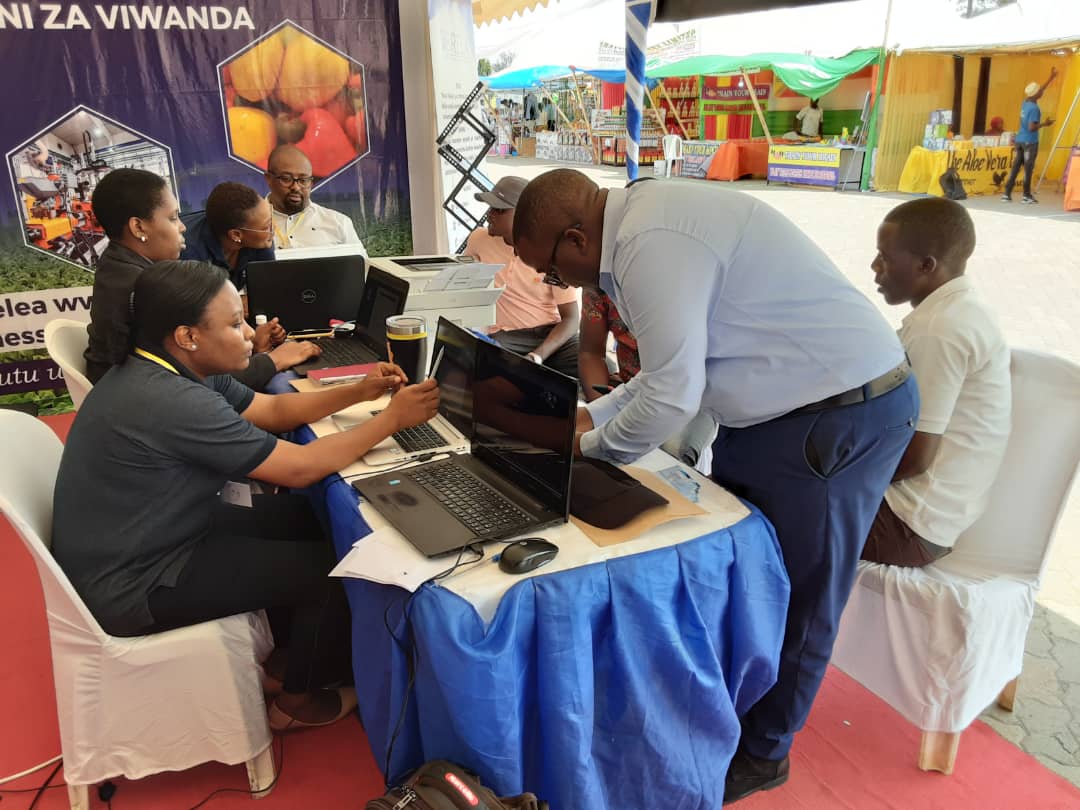 Ofisa Leseni wa Wakala wa Usajili wa Biashara na Leseni (BRELA), Bi. Winifrida Gaudence akimkabidhi cheti cha Leseni ya Biashara kundi A Bw. Gilinde Kapula Fale, mara baada ya usajili wa papo kwa papo katika banda la taasisi hiyo kwenye Maonesho ya Biashara ya 16 yanayoendelea katika viwanja vya Rock City Mall jijini Mwanza. Maonesho hayo yaliyoanza Agosti 28, 2021 na yanatarajiwa kuhitimishwa Septemba 5, 2021. (PICHA NA: BRELA)