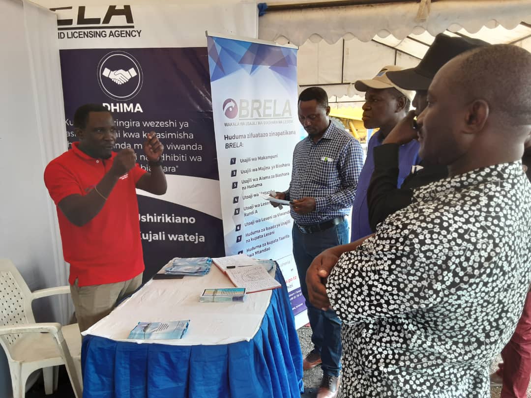 Bw. Yusuph Nakapala ( kushoto) akitoa elimu kwa wadau waliotembelea banda la BRELA katika maonesho ya Nne ya Teknolojia ya Uwekezaji kwenye Sekta ya Madini yanayofanyika katika uwanja wa kituo cha Uwekezaji, Bomba Mbili mkoani Geita. Wadau hawa walipatiwa elimu kuhusu umuhimu wa kurasimisha biashara pamoja na taratibu za Usajili wa Majina ya Biashara, Makampuni, Alama za Biashara na Huduma, utoaji wa Hataza, Leseni za Biashara kundi A na Leseni za Viwanda. Maonesho haya yaliyoanza Septemba 16, 2021 yanatarajiwa kuzinduliwa rasmi na Waziri Mkuu wa Jamuhuri ya Muungano wa Tanzania, Mhe. Majaliwa Kassm Majaliwa Septemba 22, 2021 na yatahitimishwa Septemba 26,2021.