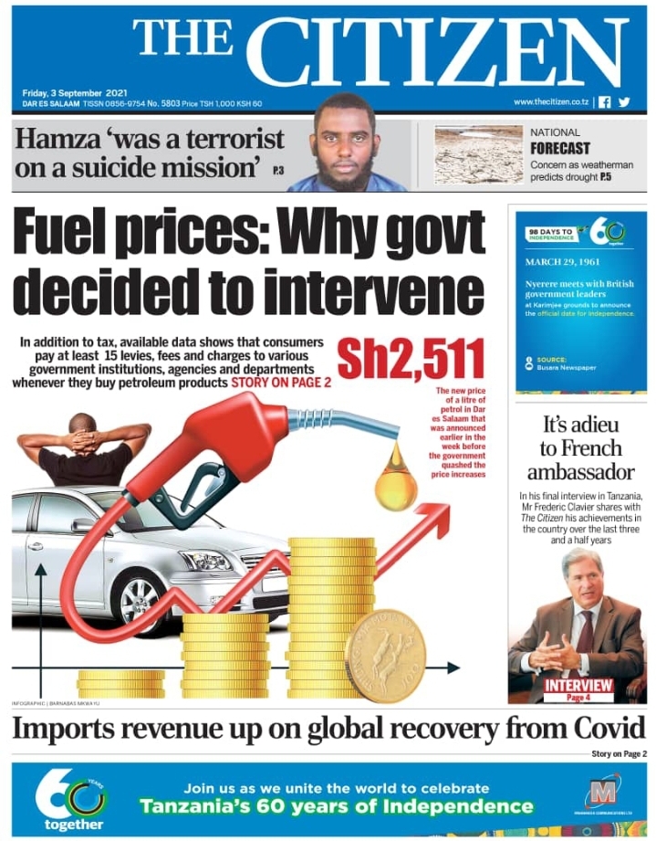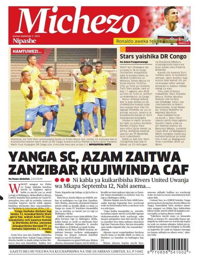 Home Uncategorized MAGAZETI YA LEO IJUMAA SEPTEMBA 3-2021 MAGAZETI YA LEO IJUMAA SEPTEMBA 3-2021 By HUGHES DUGILO - September 3, 2021 FacebookTwitterTelegramWhatsAppCopy URL Thank you for reading this post, don't forget to subscribe!