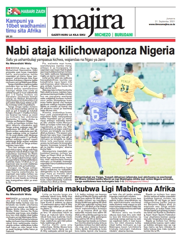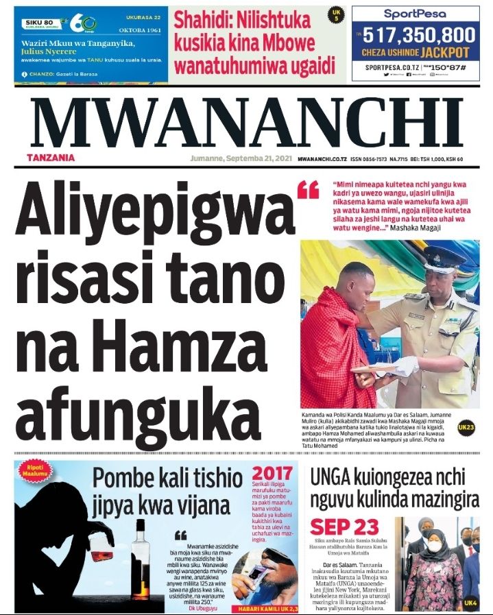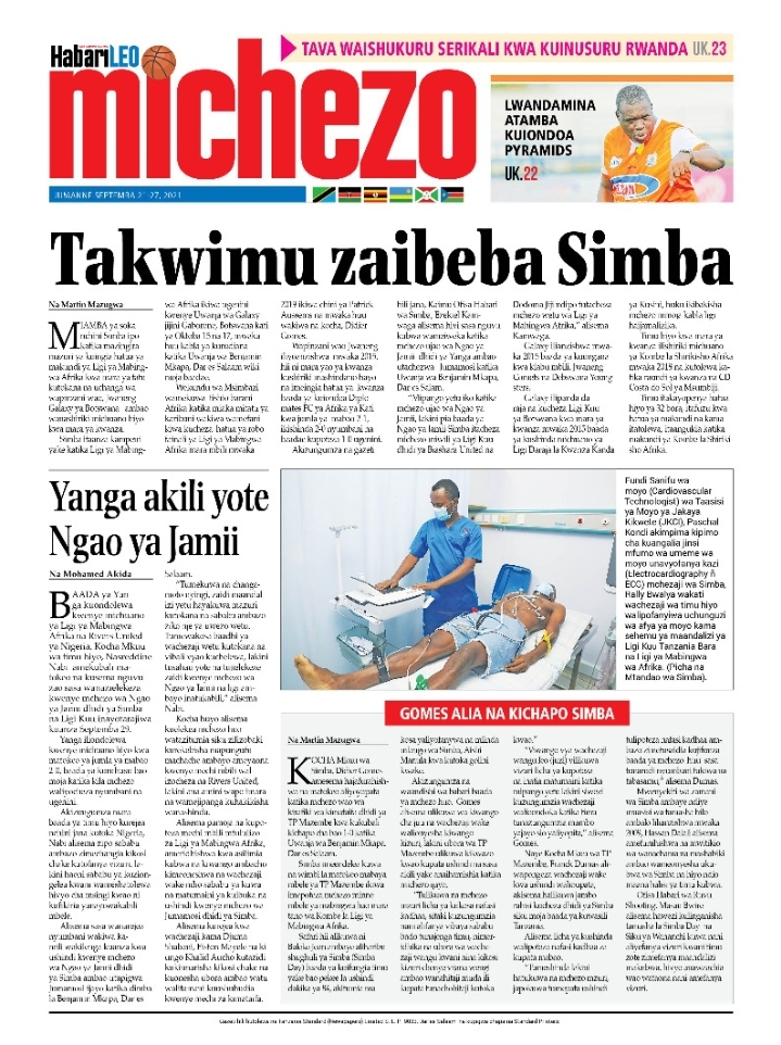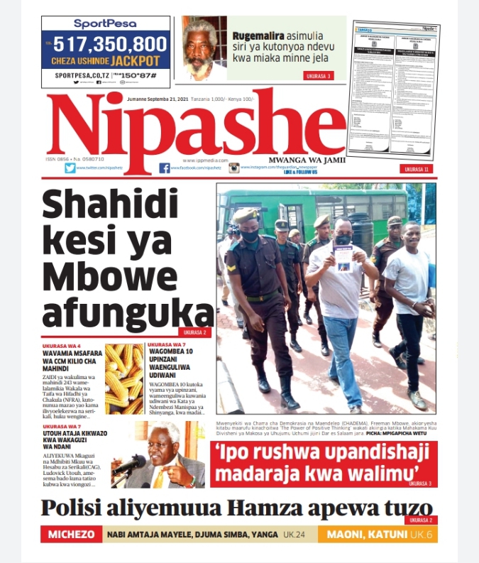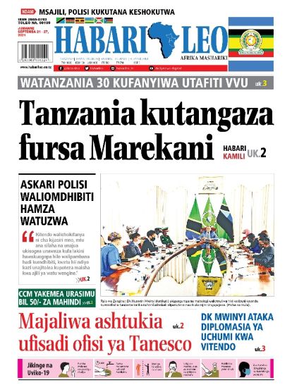 Home Uncategorized MAGAZETI YA LEO J.NNE SEPTEMBA 21-2021 MAGAZETI YA LEO J.NNE SEPTEMBA 21-2021 By HUGHES DUGILO - September 21, 2021 FacebookTwitterTelegramWhatsAppCopy URL Thank you for reading this post, don't forget to subscribe!