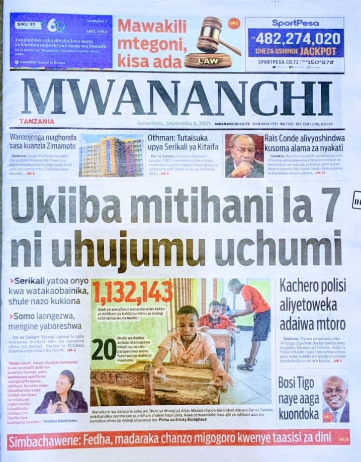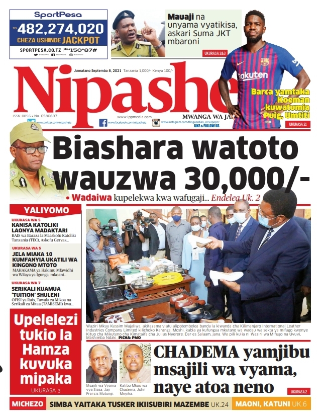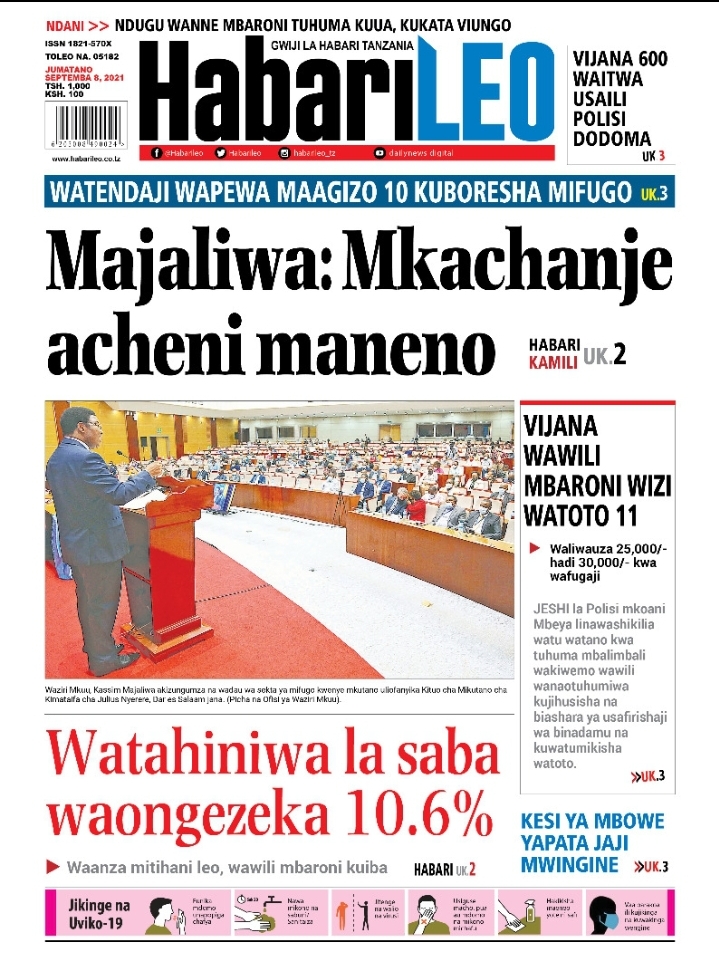 Home Uncategorized MAGAZETI YA LEO J.TANO SEPTEMBA 8,2021 MAGAZETI YA LEO J.TANO SEPTEMBA 8,2021 By HUGHES DUGILO - September 8, 2021 FacebookTwitterTelegramWhatsAppCopy URL Thank you for reading this post, don't forget to subscribe!