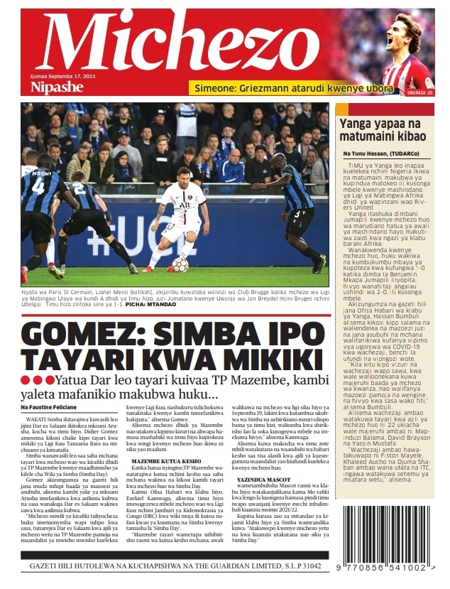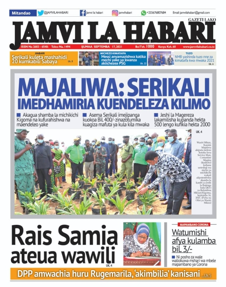 Home Uncategorized MEZA YA MAGAZETI LEO IJUMAA SEPTEMBA 17,2021 MEZA YA MAGAZETI LEO IJUMAA SEPTEMBA 17,2021 By HUGHES DUGILO - September 17, 2021 FacebookTwitterTelegramWhatsAppCopy URL Thank you for reading this post, don't forget to subscribe!