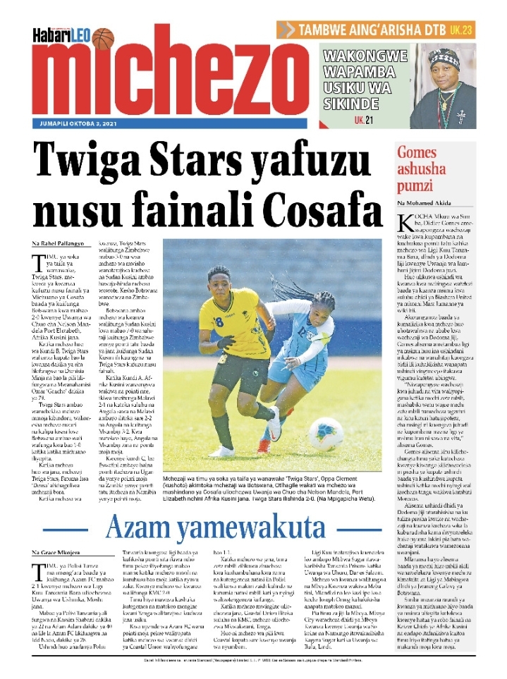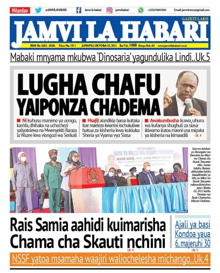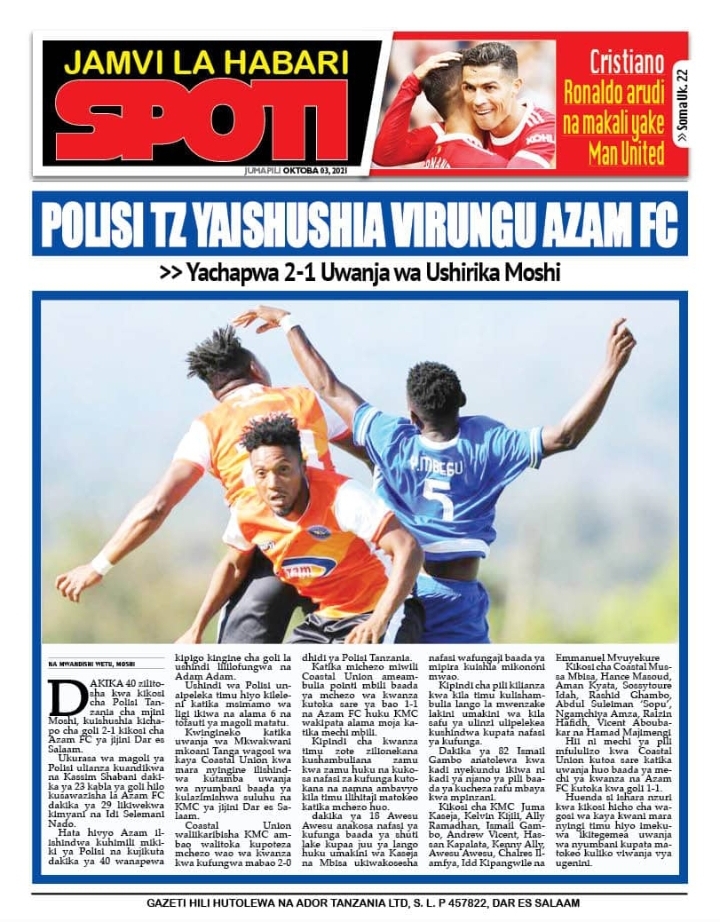 Home Uncategorized KUTOKA MAGAZETINI ASUBUHI YA LEO J.PILI OCTOBA 3-2021. KUTOKA MAGAZETINI ASUBUHI YA LEO J.PILI OCTOBA 3-2021. By HUGHES DUGILO - October 3, 2021 FacebookTwitterTelegramWhatsAppCopy URL Thank you for reading this post, don't forget to subscribe!