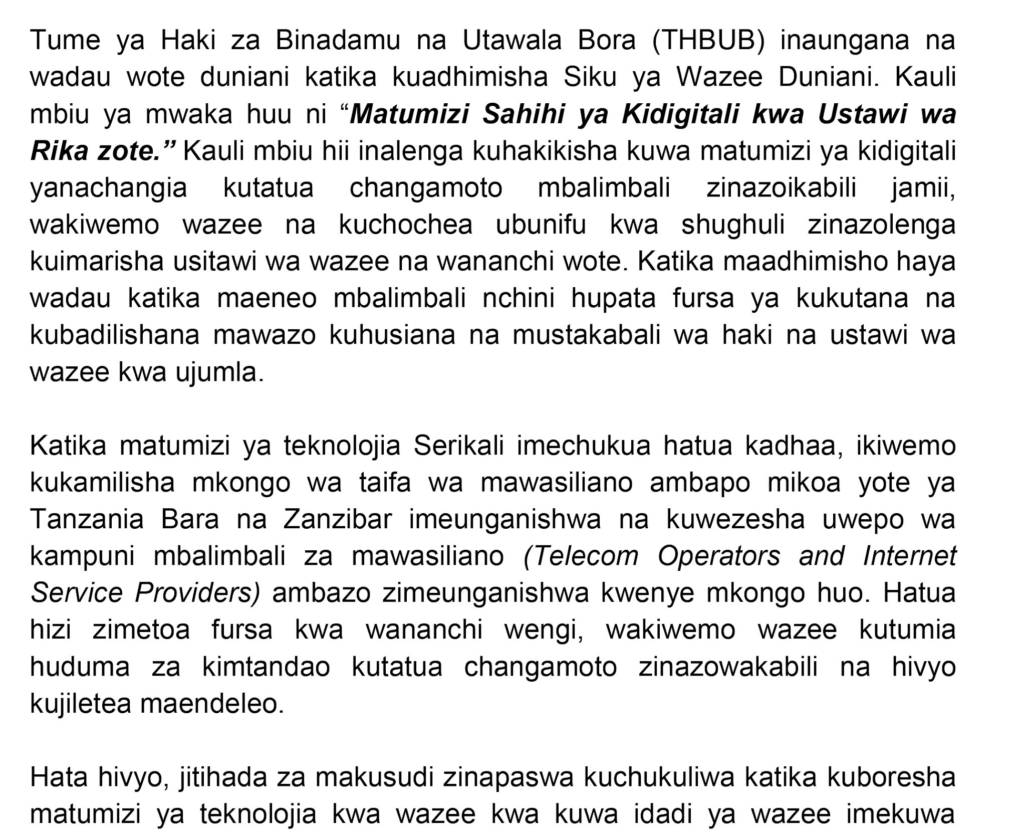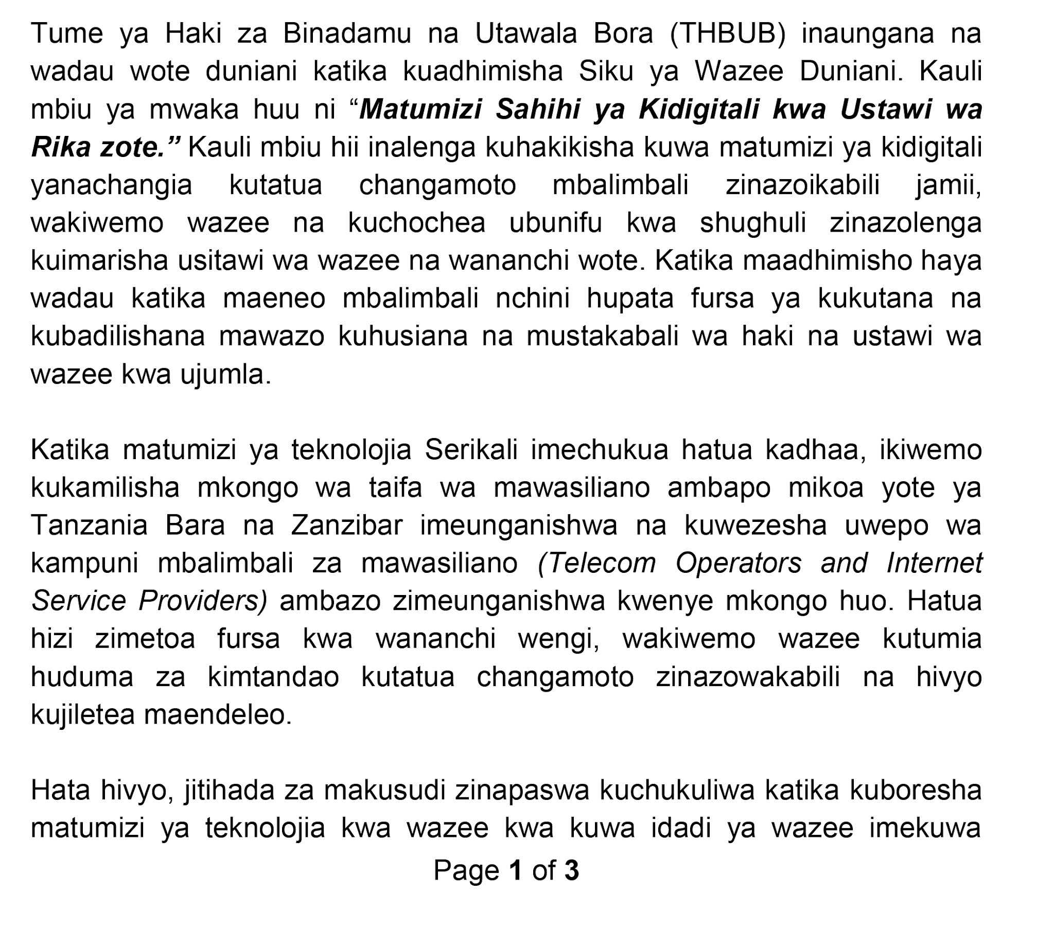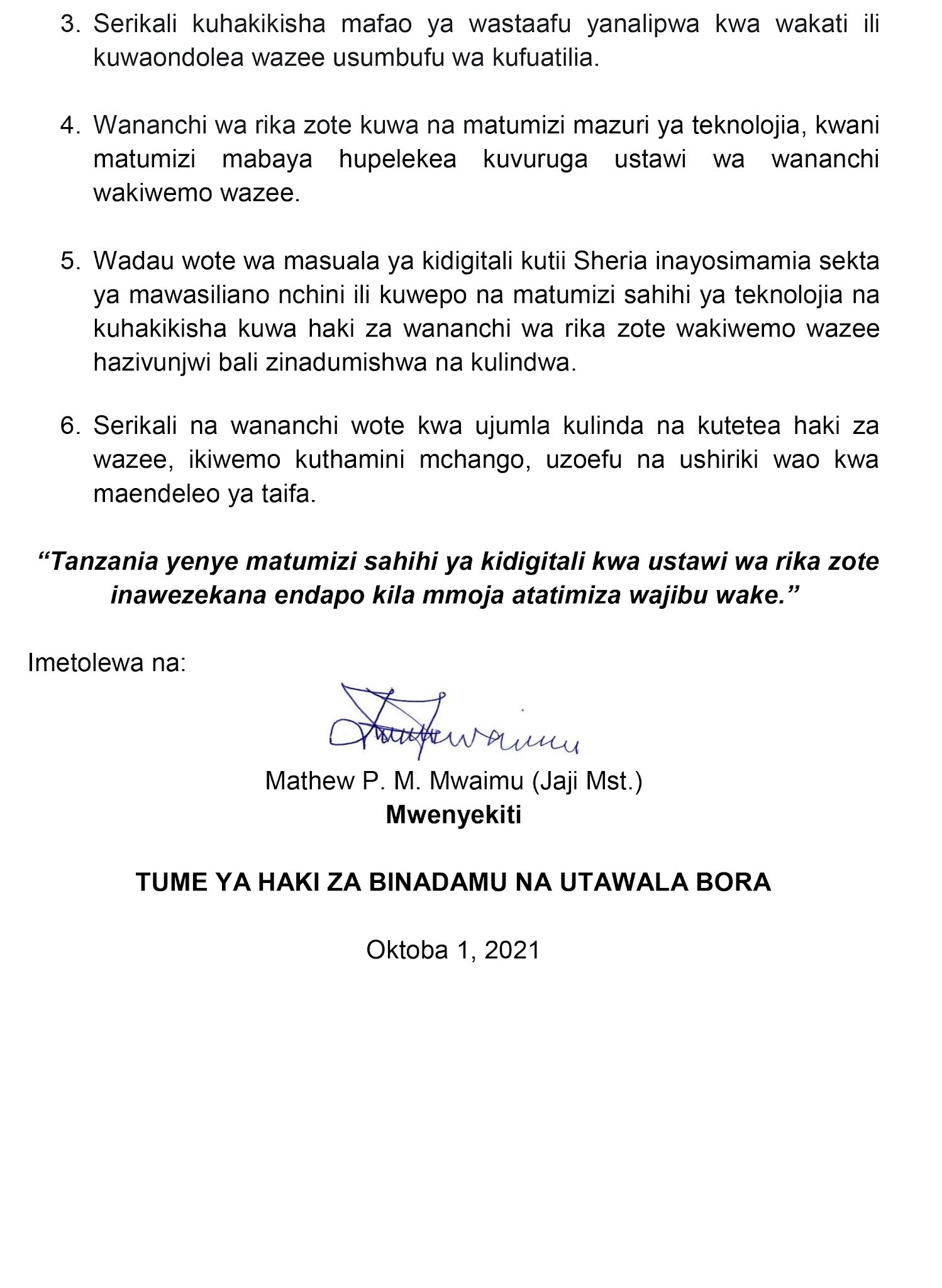 Home LOCAL TAMKO LA THBUB WAKATI WA MAADHIMISHO YA SIKU YA WAZEE DUNIANI, OKTOBA... TAMKO LA THBUB WAKATI WA MAADHIMISHO YA SIKU YA WAZEE DUNIANI, OKTOBA 1, 2021 By HUGHES DUGILO - October 1, 2021 FacebookTwitterTelegramWhatsAppCopy URL Thank you for reading this post, don't forget to subscribe!