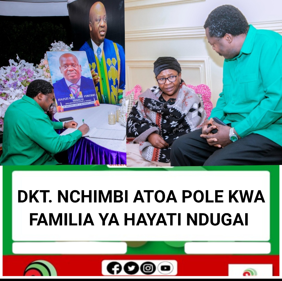 Katibu Mkuu wa Chama Cha Mapinduzi (CCM), Balozi Dkt. Emmanuel John Nchimbi akitoa pole kwa Dkt. Fatma Mganga, ambaye ni mjane wa Mhe. Job Yustino Ndugai, Spika Mstaafu wa Bunge la Jamhuri ya Muungano wa Tanzania, alipofika nyumbani kwa marehemu, Mtaa wa Njedengwa, jijini Dodoma, leo Ijumaa tarehe 9 Agosti 2025.