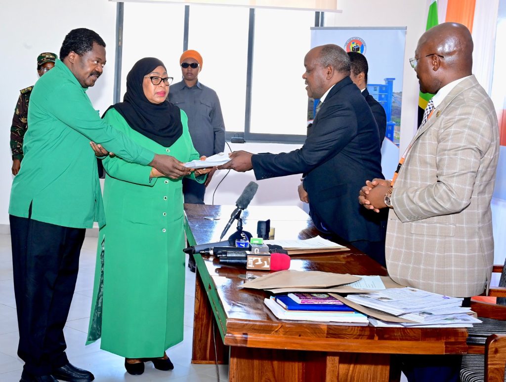 Mgombea wa Nafasi ya Rais wa Jamhuri ya Muungano wa Tanzania na Mwenyekiti wa Chama cha Mapinduzi (CCM) Ndugu Dkt. Samia Suluhu Hassan arejesha Fomu za kugombea nafasi hiyo katika Ofisi za Tume Huru ya Taifa ya Uchaguzi (INEC), Njedengwa Jijini Dodoma