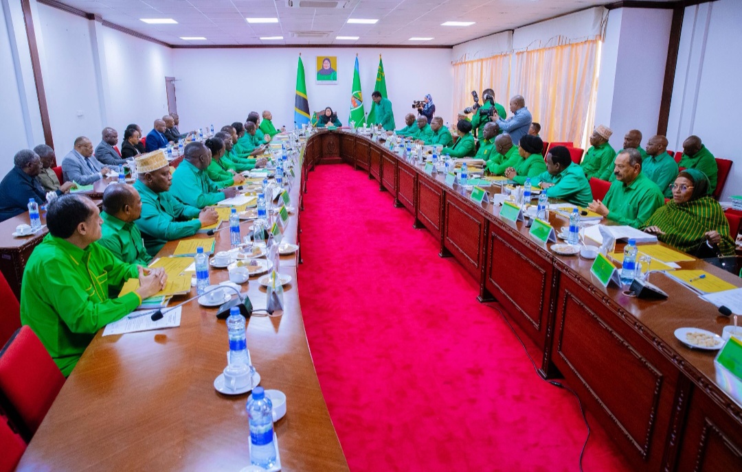 Mwenyekiti wa Chama Cha Mapinduzi (CCM) na Rais wa Jamhuri ya Muungano wa Tanzania, Mhe. Dkt. Samia Suluhu Hassan akiongoza Kikao cha Kamati Kuu ya Halmashauri Kuu ya CCM Taifa,kilichoketi leo Agosti 21,2025 Jijini Dodoma kwa ajili ya kufanya uteuzi wa Wagombea Ubunge wa Bunge la Jamhuri ya Muungano wa Tanzania,Wabunge wa Viti Maalum,Wajumbe wa Baraza la Wawakilishi Zanzibar na Wajumbe wa Baraza la Wawakilishi Viti Maalum