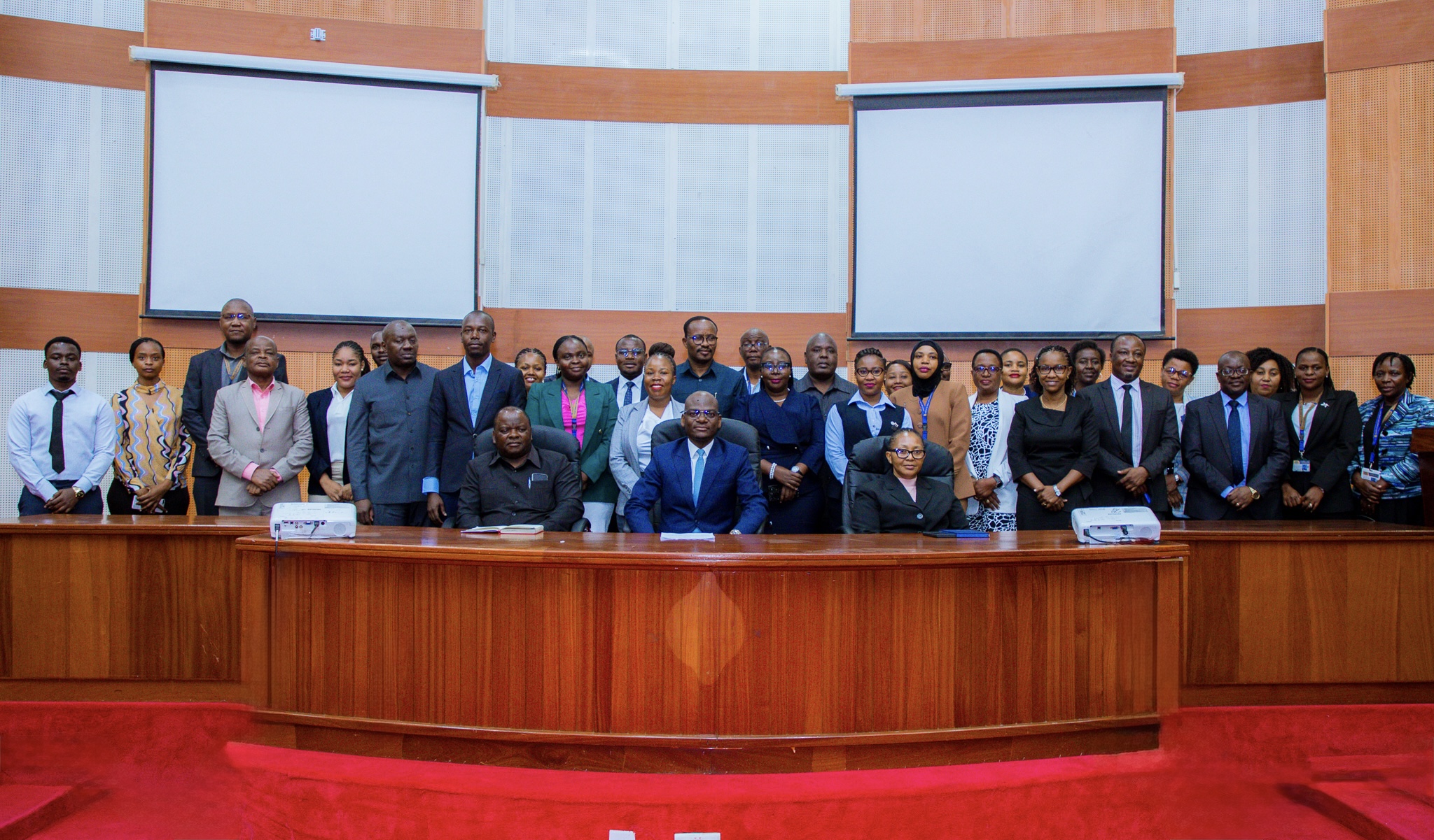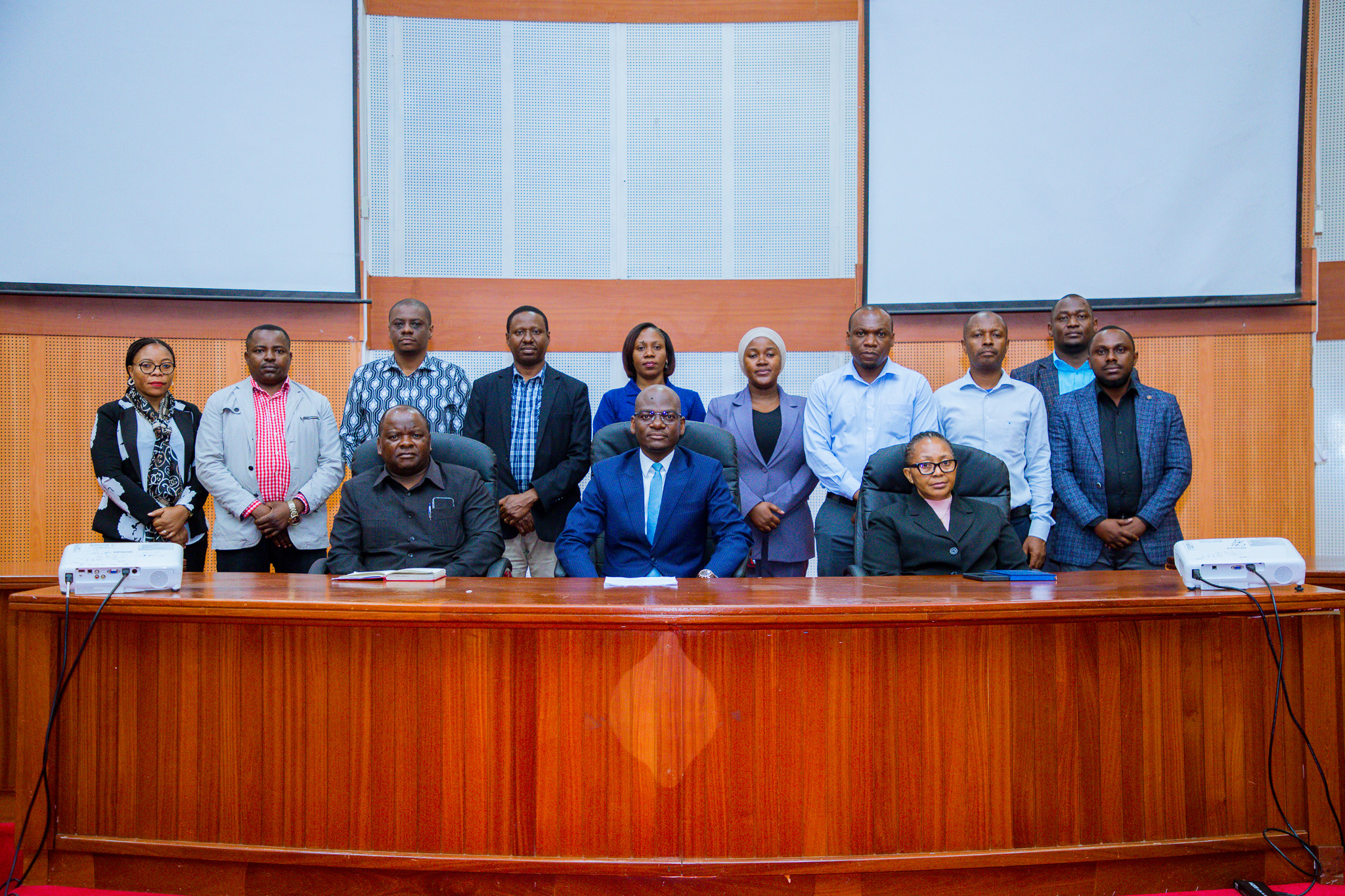Kamishna wa Bajeti, Wizara ya Fedha, Bw. Meshack Anyingisye (Katikati aliyeketi), na Makamishna wasaidizi wa Idara ya Usimamizi wa Bajeti Wizara ya Fedha, Bw. Fundi Makama (kushoto aliyeketi) na Bi. Vicky Jengo (kulia aliyeketi), wakiwa katika picha ya pamoja na baadhi ya washiriki wa Kikao kazi cha Wataalam wa Wizara, Idara zinazojitegemea, Wakala za Serikali na Sekretarieti za Mikoa, kuhusu Mfumo wa Uandaaji na Usimamizi wa Bajeti (CBMS), kilichofanyika katika ukumbi wa Kambarage, Treasury Square, jijini Dodoma.