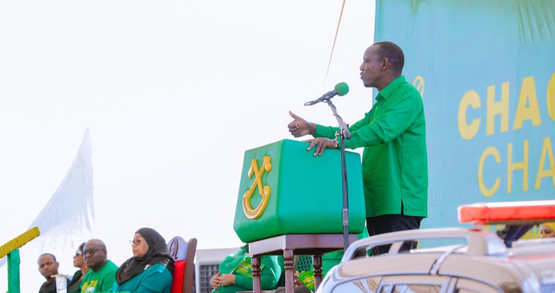 Aliyekuwa Katibu Mkuu wa Chama Cha Mapinduzi CCM Dkt. Bashiru Ally Kakurwa akimnadi Mgombea Urais wa Chama Cha Mapinduzi Dkt. Samia Suluhu Hassan kwenye mkutano wa hadhara wa Kampeni za Uchaguzi Mkuu kwa Chama cha Mapinduzi (CCM) uliofanyika katika uwanja wa Bombadia mkoani Singida tarehe 09 Septemba, 2025.