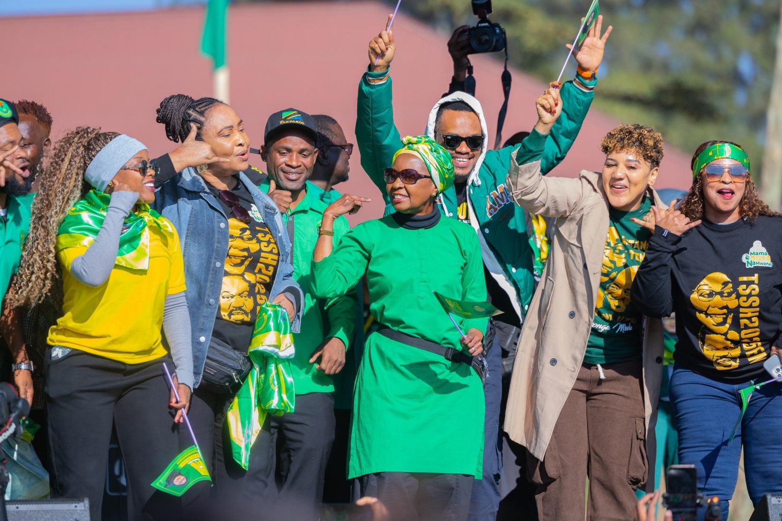 Katibu Mkuu wa Chama cha Mapimduzi CCM Dkt. Asharose Migiro na Profesa Palamagamba Kabudi wakiserebuka na wanasanii na waigizaji wa filamu katika shamrashamra za kumkaribisha Mgombea Urais wa Jamhuri ya Muungano wa Tanzania kwa tiketi ya CCM Dkt. Samia Suluhu Hassan utakaofanyika kwenye uwanja wa Tandale mjini Tukuyu ambapo Dkt. Samia anatarajiwa kuwahutubia na kuwaomba kumpigia kura za ndiyo ifikapo Oktoba 29, 2025 katika uchaguzi Mkuu wa Rais, Wabunge na Madiwani utakaofanyika nchi nzima.