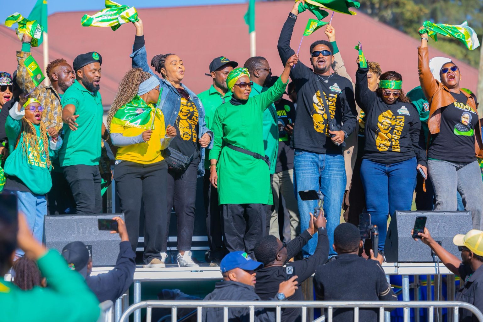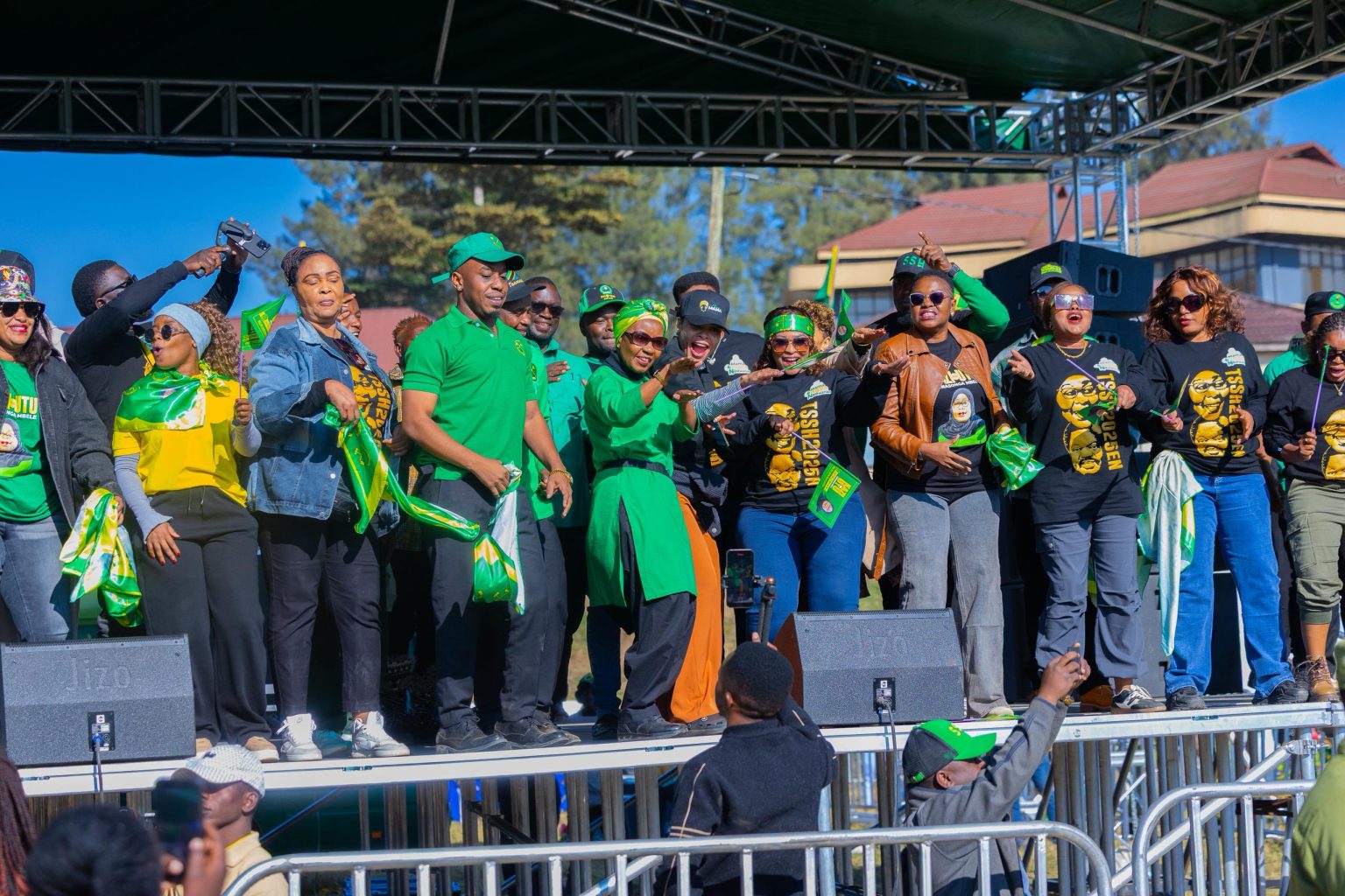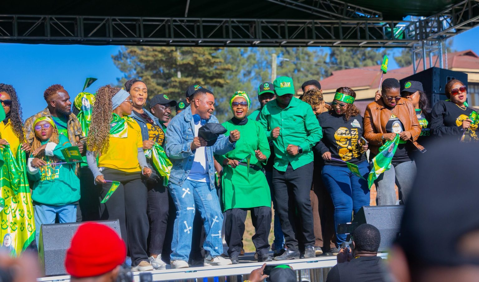 Katibu Mkuu wa Chama cha Mapimduzi CCM Dkt. Asharose Migiro na Profesa Palamagamba Kabudi wakiserebuka na wanasanii na waigizaji wa filamu katika shamrashamra za kumkaribisha Mgombea Urais wa Jamhuri ya Muungano wa Tanzania kwa tiketi ya CCM Dkt. Samia Suluhu Hassan utakaofanyika kwenye uwanja wa Tandale mjini Tukuyu ambapo Dkt. Samia anatarajiwa kuwahutubia na kuwaomba kumpigia kura za ndiyo ifikapo Oktoba 29, 2025 katika uchaguzi Mkuu wa Rais, Wabunge na Madiwani utakaofanyika nchi nzima.