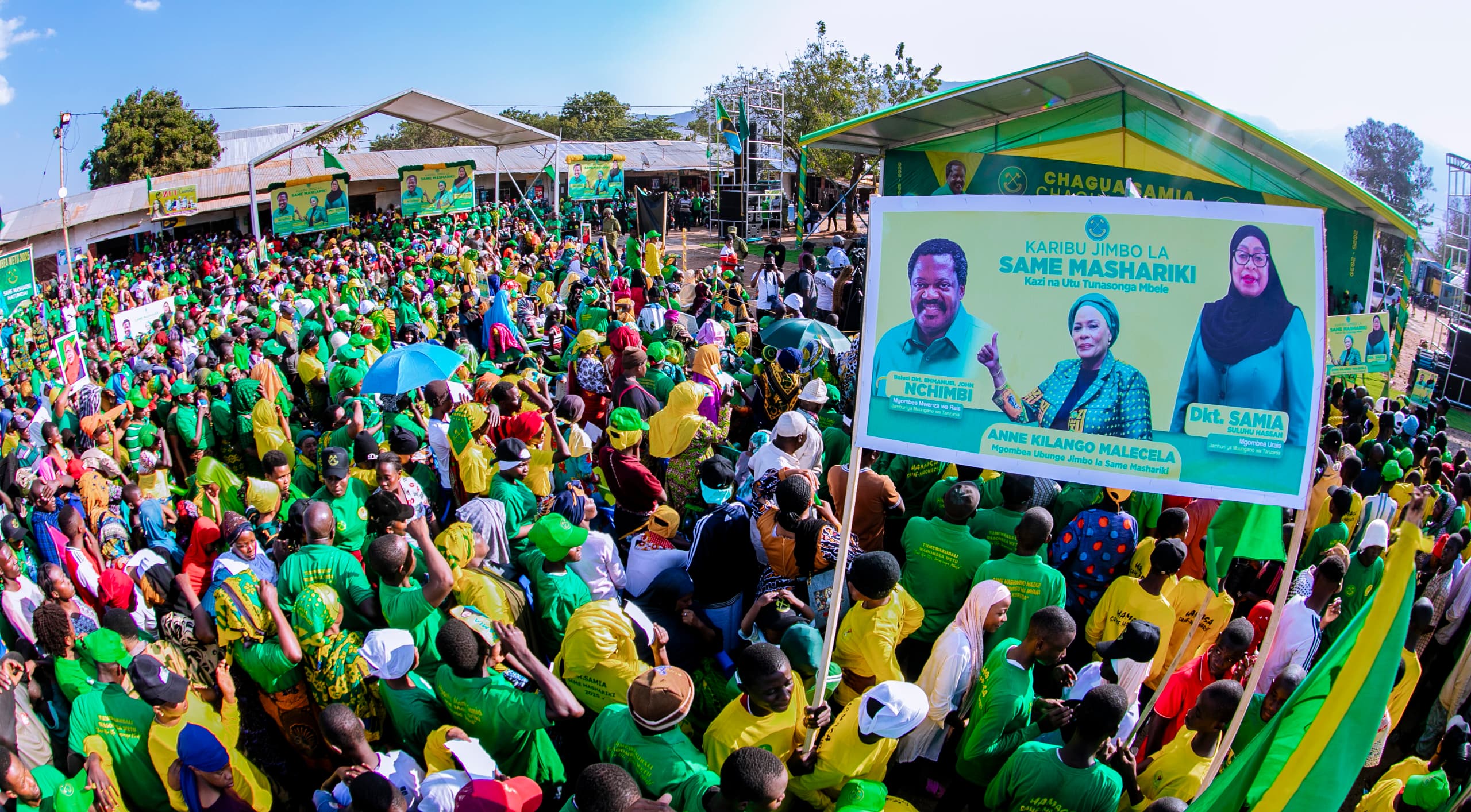 MGOMBEA Mwenza wa Kiti cha Urais wa Jamhuri ya Muungano wa Tanzania kwa tiketi ya Chama Cha Mapinduzi (CCM), Balozi Dkt. Emmanuel John Nchimbi, amepokewa kwa shangwe na Wananchi Kata ya Ndungu, Jimbo la Same Mashariki,alipowasili katika uwanja wa kata hiyo kwenye mkutano wake wa mwisho wa kampeni Mkoani Kilimanjaro leo Jumapili Septemba 14,2025.