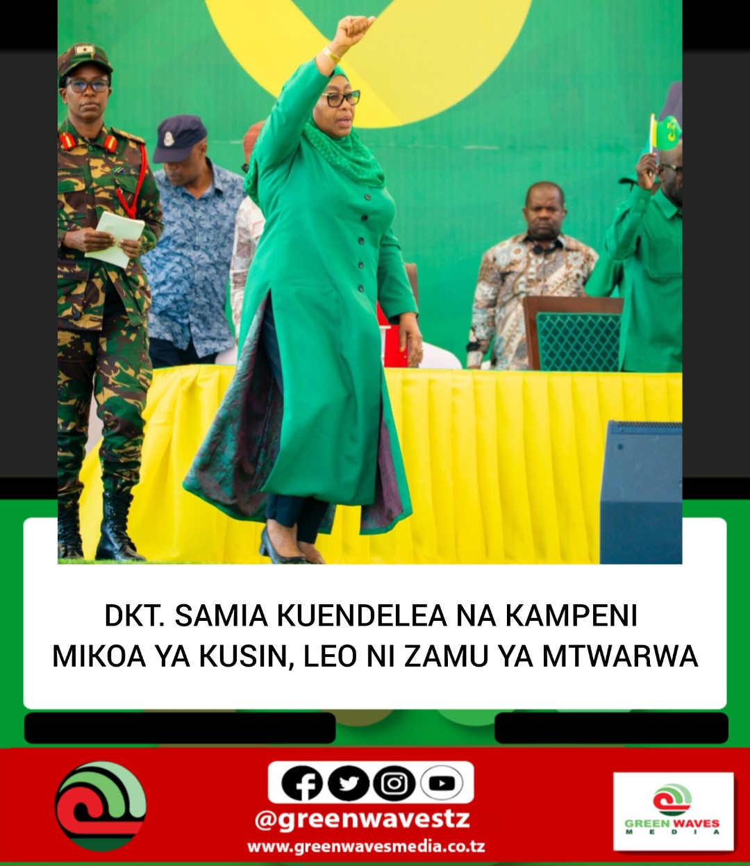 Uchaguzi Mkuu wa Tanzania unatarajiwa kufanyika mwezi Oktoba na Dkt. Samia ameendelea kuchanja mbuga kwenye Mikoa mbalimbali Ya Tanzania, huku pia Mgombea wake mwenza Dkt. Emmanuel Nchimbi akiwa kwenye Mikoa ya Nyanda za juu Kusini Magharibi mwa Tanzania, wote wakinadi sera na Ilani za Chama Cha Mapinduzi na kueleza mafanikio makubwa na rekodi nyingi njema zilizowekwa na Dkt. Samia katika kuwatumikia wananchi kwa miaka minne na nusu iliyopita.