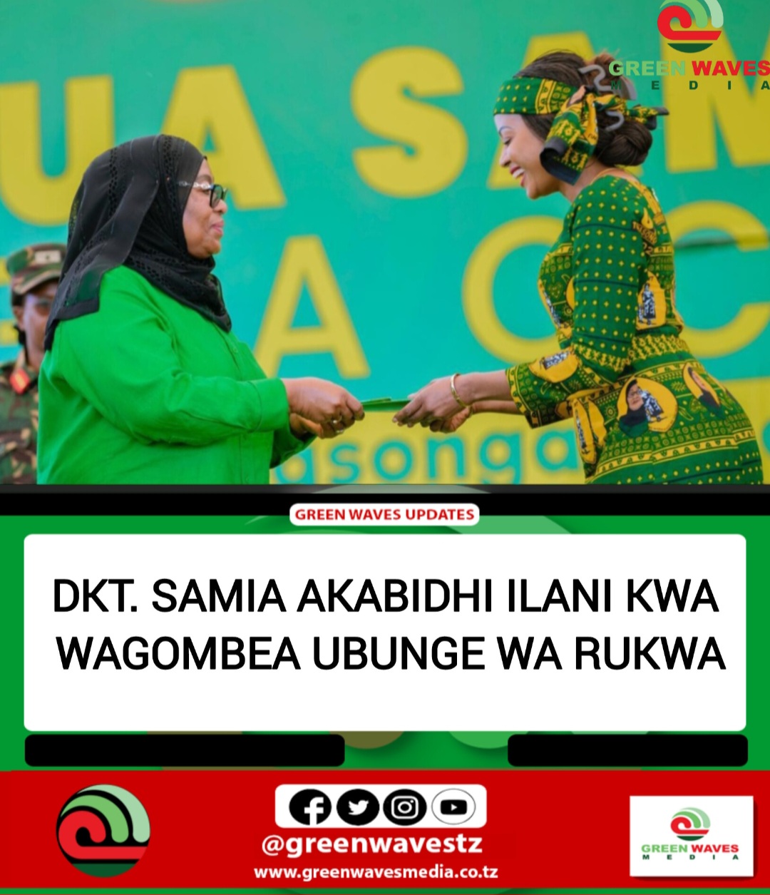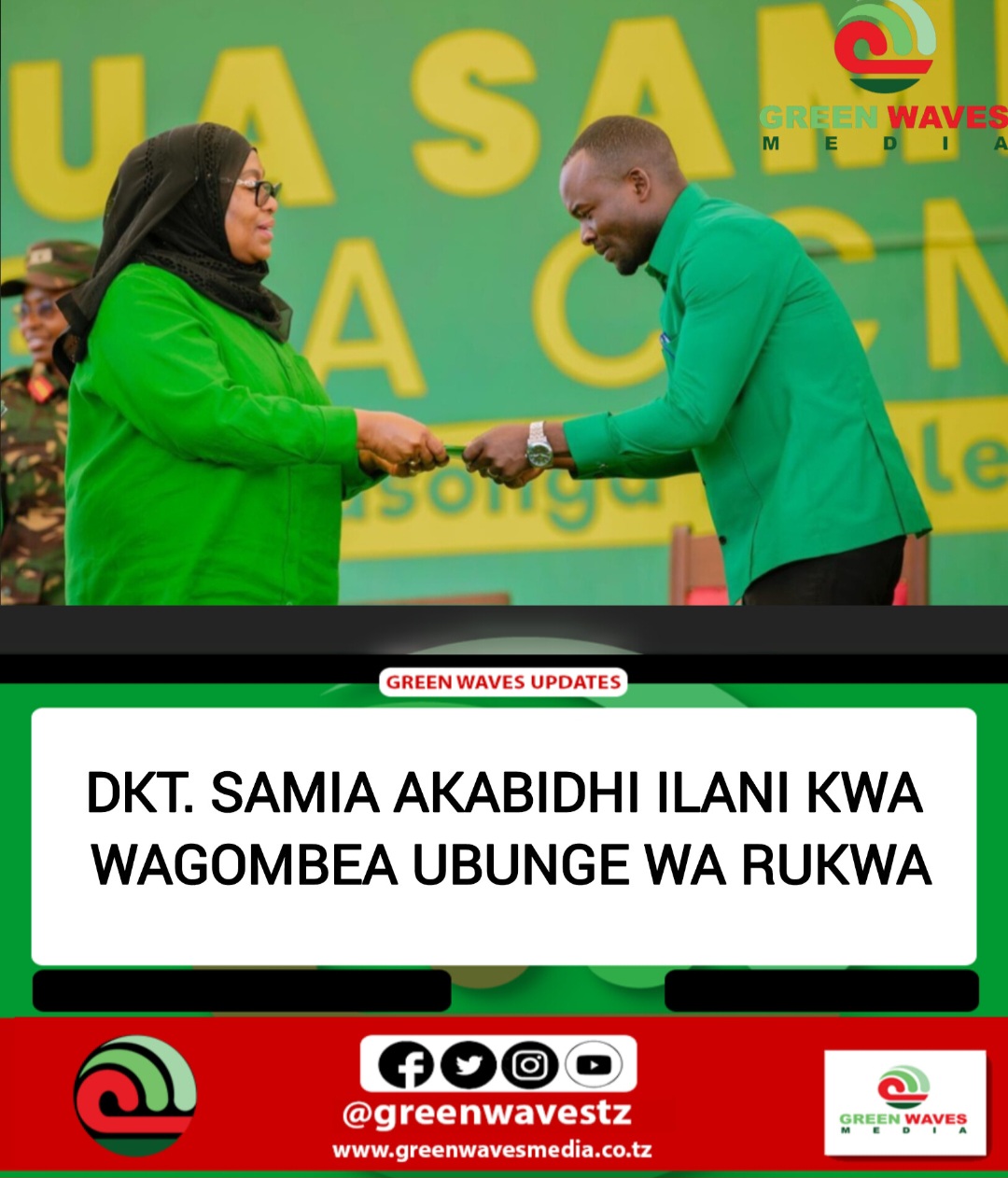 Mgombea wa nafasi ya Urais wa Jamhuri ya Muungano wa Tanzania kwa tiketi ya Chama cha Mapinduzi (CCM) Dkt. Samia Suluhu Hassan akiwakabidhi Ilani ya Uchaguzi baadhi ya wagombea Ubunge wa Viti maalumu na wa Majimbo mbalimbali ya Mkoa wa Rukwa akiwemo Mgombea Mwenyeji Ndugu Aeshi Hilal leo Oktoba 19, 2025, Sumbawanga Mjini Mkoani Rukwa mara baada ya kuwahutubia wananchi wa Sumbawanga Mjini kwenye Viwanja vya Kizwite. Dkt. Samia amehitimisha Ziara ya Kampeni Mkoani humo leo.