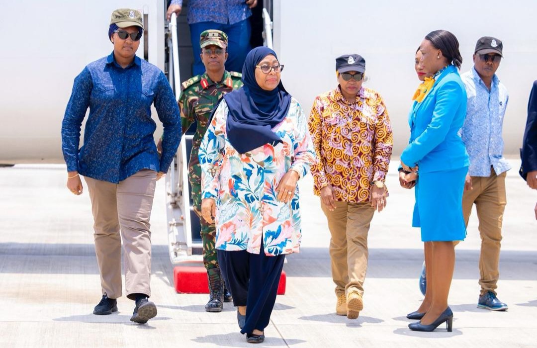 Mgombea wa nafasi ya Urais wa Jamhuri ya Muungano wa Tanzania kupitia Chama Cha Mapinduzi (CCM) Dkt. Samia Suluhu Hassan kwenye picha za matukio tofauti alipowasili katika Uwanja wa Ndege wa Abeid Amani Karume Visiwani Zanzibar tayari kwa Mkutano Mkubwa wa Kampeni Za Uchaguzi Mkuu, Mkutano unaotarajiwa kufanyika kwenye Uwanja wa Mnazi mmoja leo Ijumaa October 24, 2025.