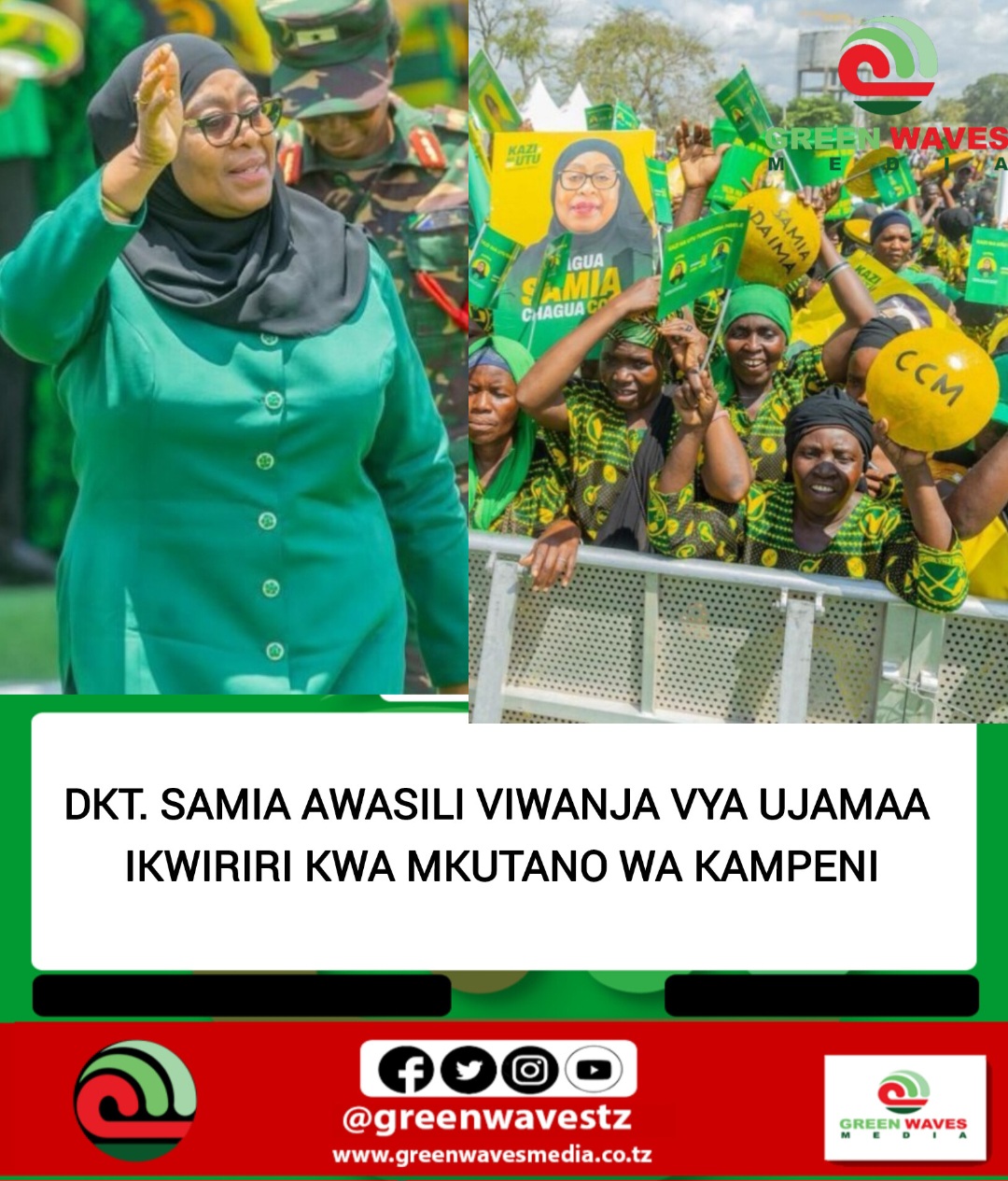 Mgombea wa nafasi ya Urais wa Jamhuri ya Muungano wa Tanzania kwa tiketi ya Chama Cha Mapinduzi (CCM) Dkt. Samia Suluhu Hassan akiingia kwenye Viwanja vya Ujamaa Ikwiriri, Wilayani Rufiji Mkoani Pwani leo Jumatatu Oktoba 20, 2025 kwaajili ya Mkutano wake wa hadhara wa Kampeni za uchaguzi Mkuu wa Oktoba 29, 2025.