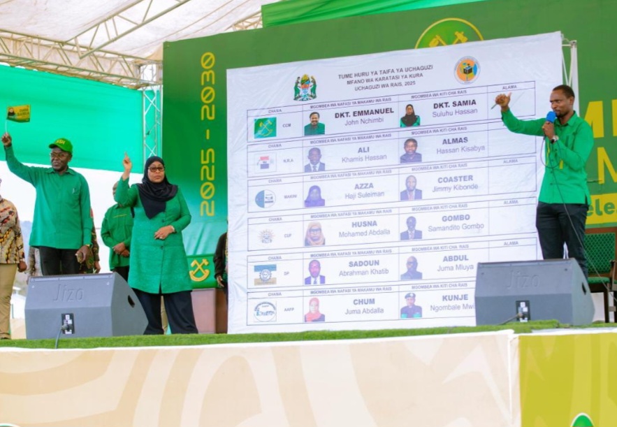 Dkt. Samia katika elimu yake hiyo ametumia mfano wa karatasi ya kupigia kura zinazotolewa na Tume huru ya Taifa ya Uchaguzi, kuwaelekeza wananchi lilipo Jina lake na la Mgombea Mwenza wake pamoja na namna ya kupiga kura sambamba na mambo ya kuepuka ili kuepusha kuharibu kura hapo Oktoba 29, 2025 pembeni yake ni Katibu wa NEC, Itikadi, uenezi na mafunzo Ndugu Kenani Laban Kihongosi.