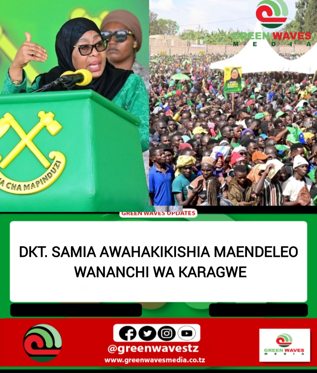 Mgombea wa nafasi ya Urais wa Jamhuri ya Muungano wa Tanzania kwa tiketi ya Chama Cha Mapinduzi (CCM), Dkt. Samia Suluhu Hassan, amewahakikishia wananchi wa Karagwe Mkoani Kagera kuwa miradi ya maendeleo katika sekta mbalimbali inaendelea kwa kasi ili kuboresha maisha yao.
