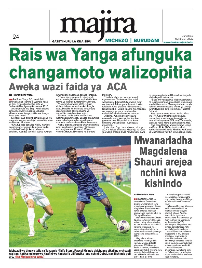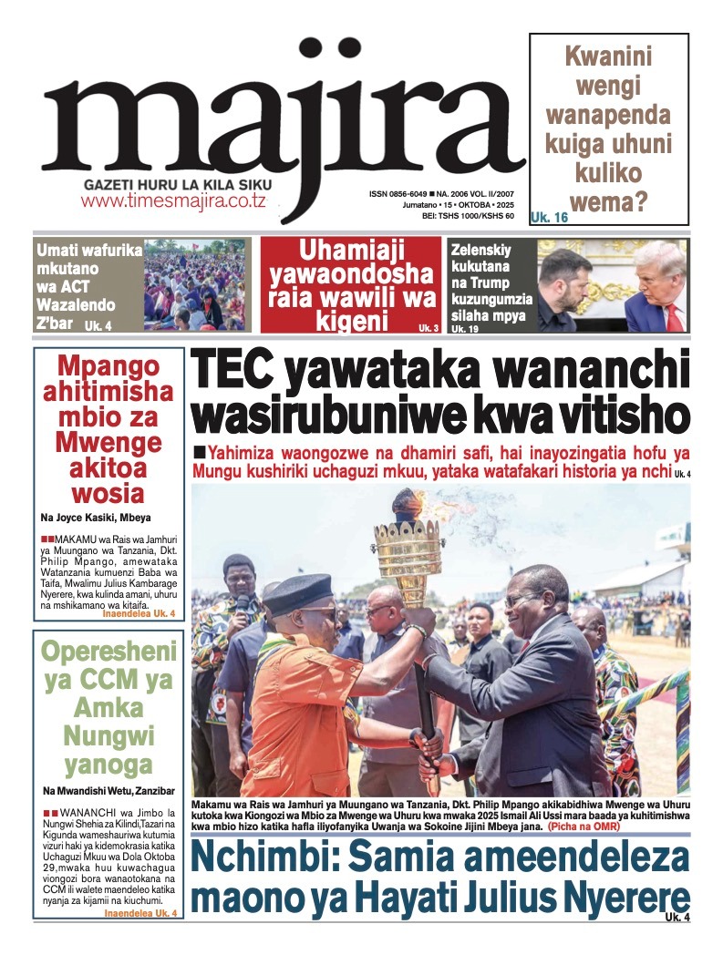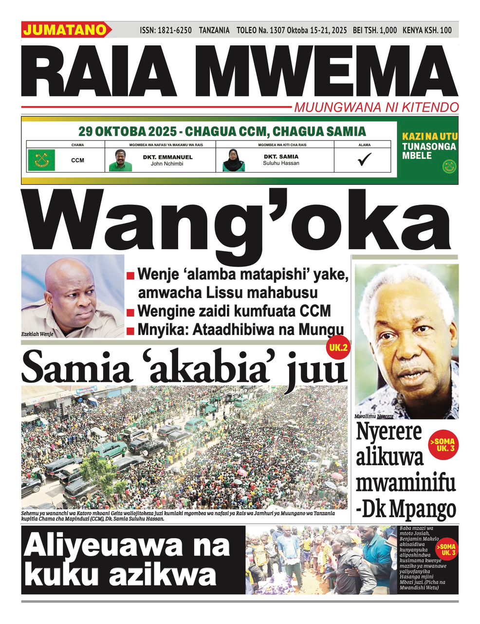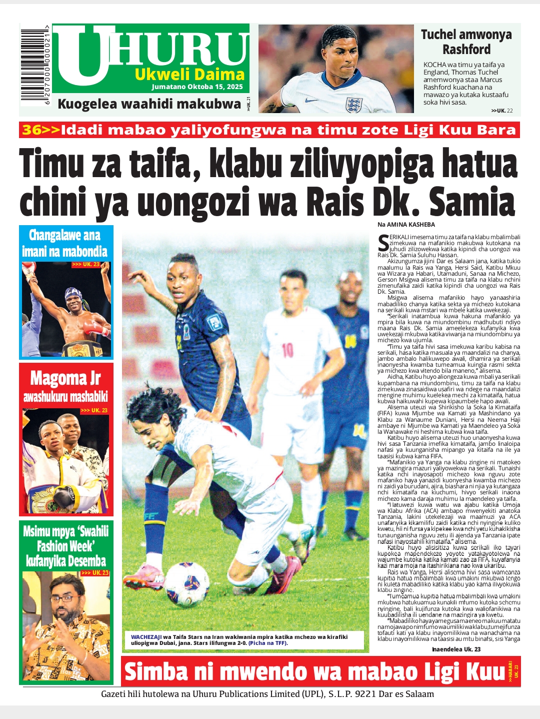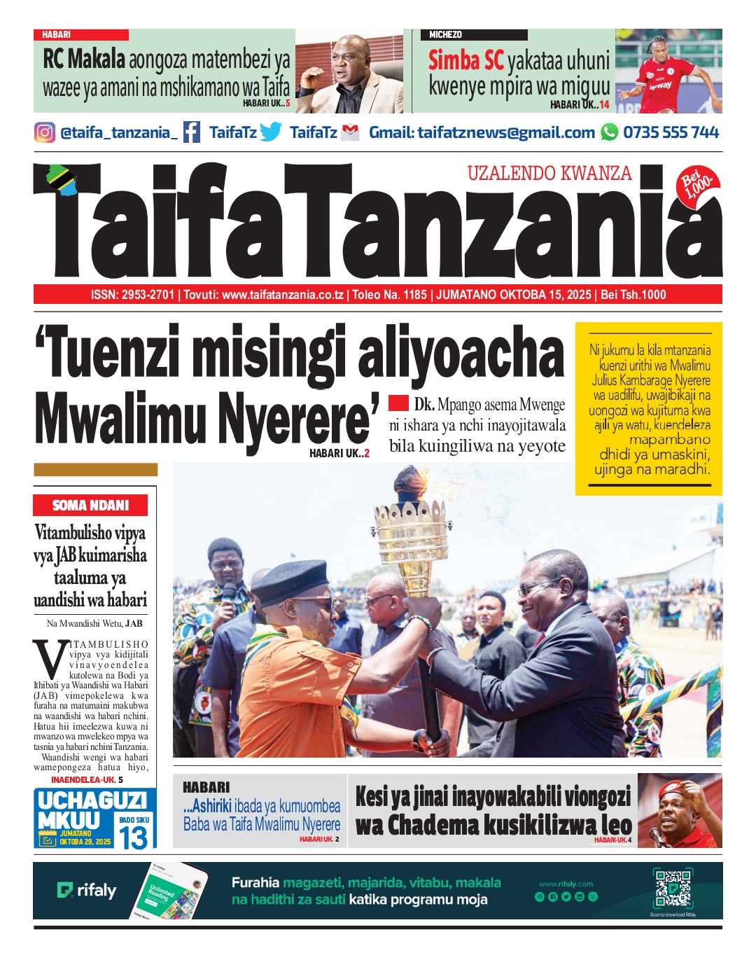 Home NEWSPAPERS HAYA HAPA MAGAZETI YA LEO JUMATANO OCTOBA 15_2025. HAYA HAPA MAGAZETI YA LEO JUMATANO OCTOBA 15_2025. By ENNA SIMION - October 15, 2025 FacebookTwitterTelegramWhatsAppCopy URL Thank you for reading this post, don't forget to subscribe! http://HAYA HAPA MAGAZETI YA LEO JUMATANO OCTOBA 15_2025.