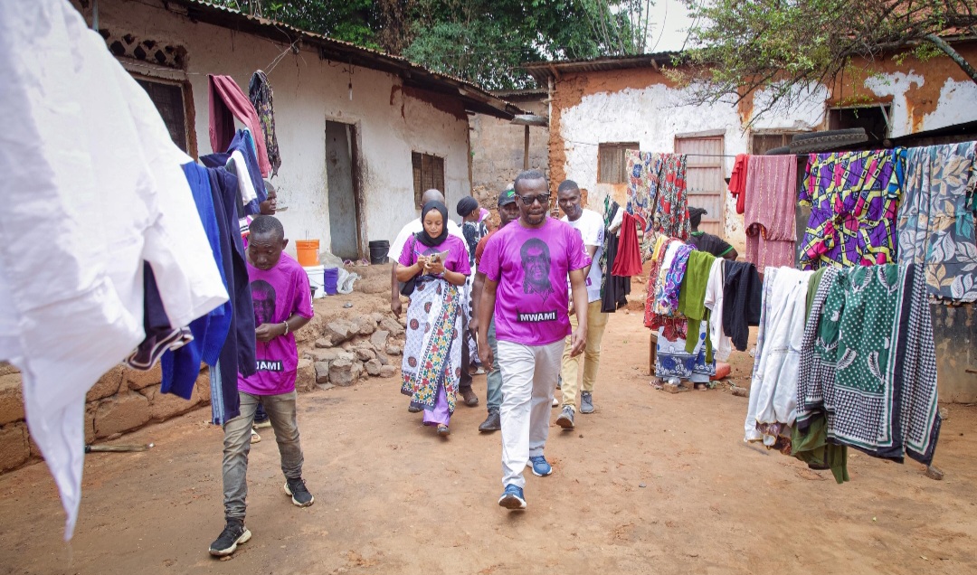 Mgombea ubunge jimbo la Kigoma mjini kwa tiketi ya ACT Wazalendo, Zitto Kabwe akiwa na mgombea udiwani kata ya Mwanga Kaskazini wa chama hicho, Wakili Mubanga wakiomba kura kwa wakazi wa kata hiyo, wakati wa kampeni ya nyumba kwa nyumba iliyofanyika katika kata hiyo, mkoani Kigoma, Oktoba 23, 2025