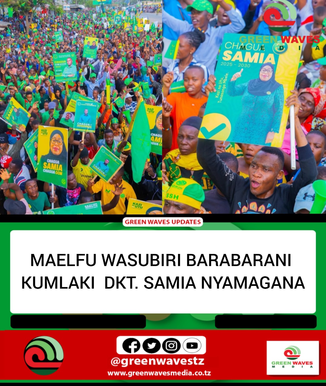 Maelfu ya wananchi wa Buhongwa Wilayani Nyamagana Mkoani Mwanza wakiwa wamejitokeza kwa wingi pembezoni mwa barabara, tayari kwaajili ya kumlaki na kumsikiliza Mgombea wa nafasi ya Urais wa Jamhuri ya Muungano wa Tanzania kupitia tiketi ya Chama Cha Mapinduzi CCM Dkt. Samia Suluhu Hassan leo Jumanne Oktoba 07, 2025. Dkt. Samia amerejea kwenye Kampeni zake mara baada ya mapumziko mafupi na zamu hii akitarajiwa kurindima kwenye Mikoa ya Kanda ya Ziwa akianza na Mkoa wa Mwanza kwenye Wilaya za Nyamagana, Misungwi pamoja na Wilaya ya Sengerema.