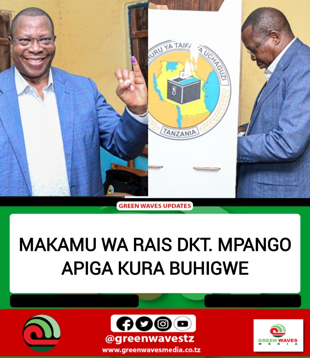 Makamu wa Rais wa Jamhuri ya Muungano wa Tanzania Mhe. Dkt. Philip Mpango akishiriki zoezi la kupiga kura ya kuchagua Rais, Mbunge na Diwani akiwa katika Kijiji cha Kasumo, Wilaya ya Buhigwe mkoani Kigoma leo tarehe 29 Oktoba 2025.
