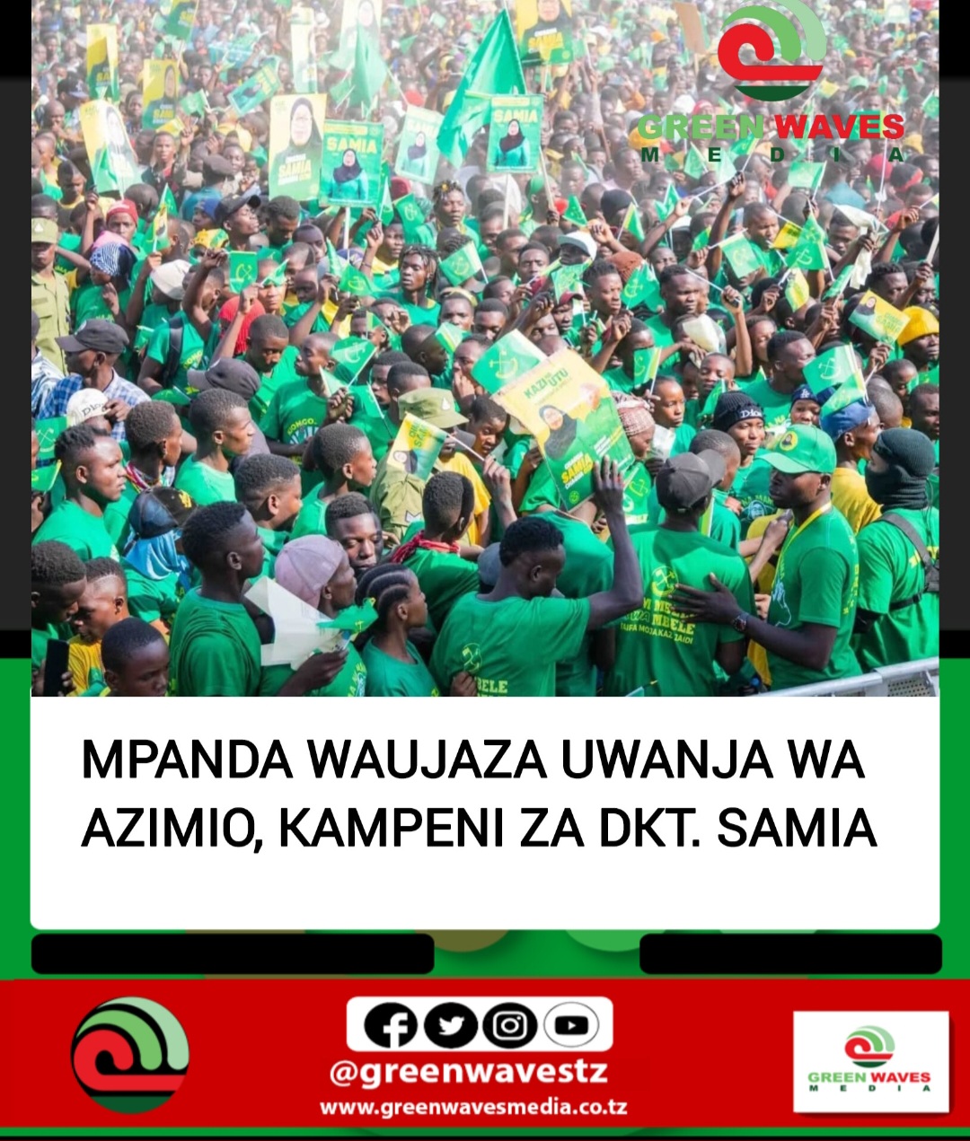 Maelfu ya wananchi na Wanachama wa Chama Cha Mapinduzi CCM wakiwa wameujaza uwanja wa Azimio Wilayani Mpanda Mkoani Katavi leo Jumamosi Oktoba 18, 2025 ili kumlaki na kumsikiliza Mgombea wa nafasi ya Urais wa Jamhuri ya Muungano wa Tanzania kwa tiketi ya Chama Cha Mapinduzi CCM Dkt. Samia Suluhu Hassan anayeanza Kampeni zake hii leo kwenye Mkoa huo wa Katavi pamoja na Mkoani Rukwa. Uchaguzi Mkuu unafanyika Oktoba 29, 2025, na Dkt. Samia anatumia mikutano hiyo kunadi ilani ya Chama chake, kueleza mafanikio ya serikali yake ya awamu ya sita na kuwaomba kura Watanzania.