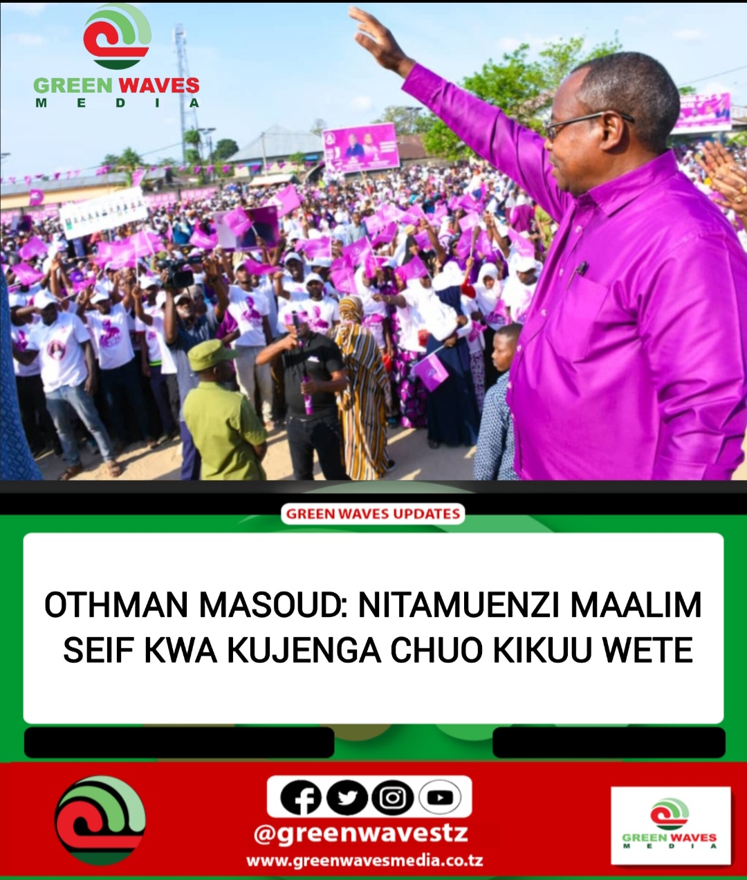 Mgombea Urais wa Zanzibar kupitia chama cha ACT Wazalendo, Othman Masoud Othman, amesema kuwa ataendeleza ndoto na misingi ya Marehemu Maalim Seif Sharif Hamad kwa kujenga Chuo Kikuu cha Maalim Seif Sharif Hamad katika mji wa Wete, Mkoa wa Kaskazini Pemba — taasisi itakayokuwa ngome ya elimu, uzalendo na maendeleo endelevu kwa vizazi vijavyo.