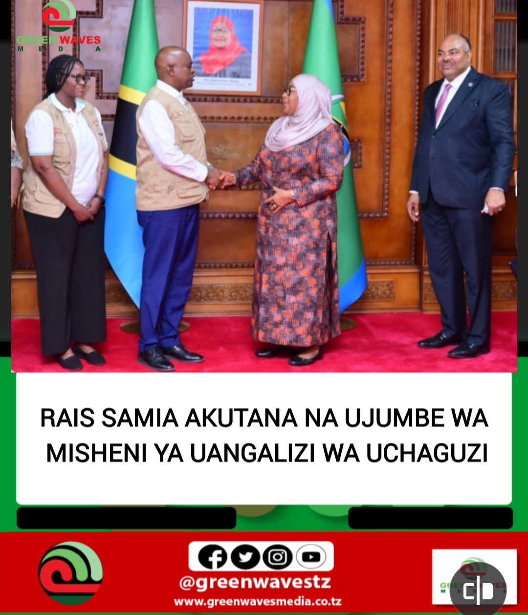 Rais wa Jamhuri ya Muungano wa Tanzania Dkt. Samia Suluhu Hassan leo Jumamosi Oktoba 25, 2025 amekutana na kuzungumza na Ujumbe wa Misheni ya Uangalizi wa Uchaguzi kutoka Umoja wa Afrika (AUEOM) ulioongozwa na Rais Mstaafu wa Jamhuri ya Botswana na Kiongozi wa Misheni hiyo, Mhe. Mokgweetsi Masisi, Ikulu ndogo ya Tunguu, Visiwani Zanzibar. Tanzania itafanya uchaguzi wake Mkuu Jumatano ya wiki ijayo Oktoba 29, 2025, Dkt. Samia akiwa miongoni mwa wanasiasa wanaowania nafasi ya Urais wa Jamhuri ya Muungano wa Tanzania.