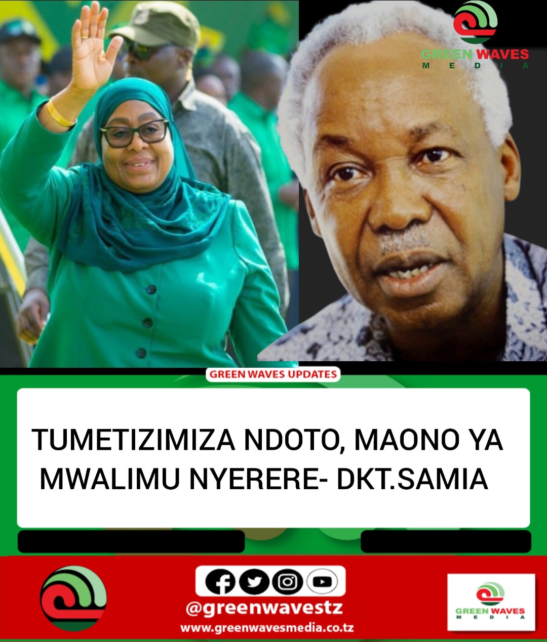 Mgombea wa nafasi ya Urais wa Jamhuri ya Muungano wa Tanzania kwa tiketi ya Chama Cha Mapinduzi (CCM) na Rais wa awamu ya sita Dkt. Samia Suluhu Hassan amesema serikali yake ya awamu ya sita na awamu ya tano zimefanikiwa kutekeleza kwa vitendo Maono na Fikra za Baba wa Taifa Mwalimu Julius Kambarage Nyerere katika kujenga Taifa imara linalojitegemea na kujali maendeleo ya watu.