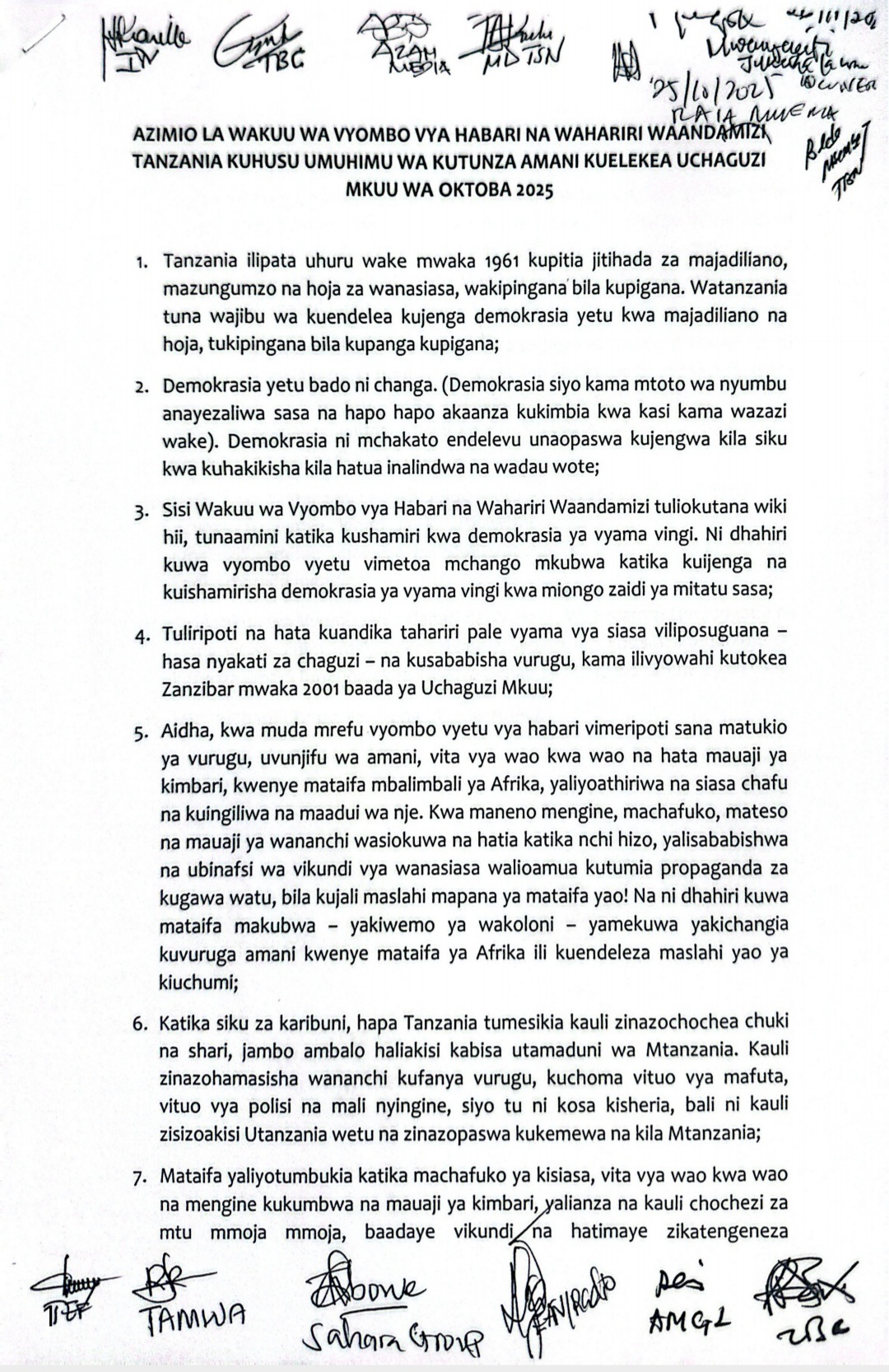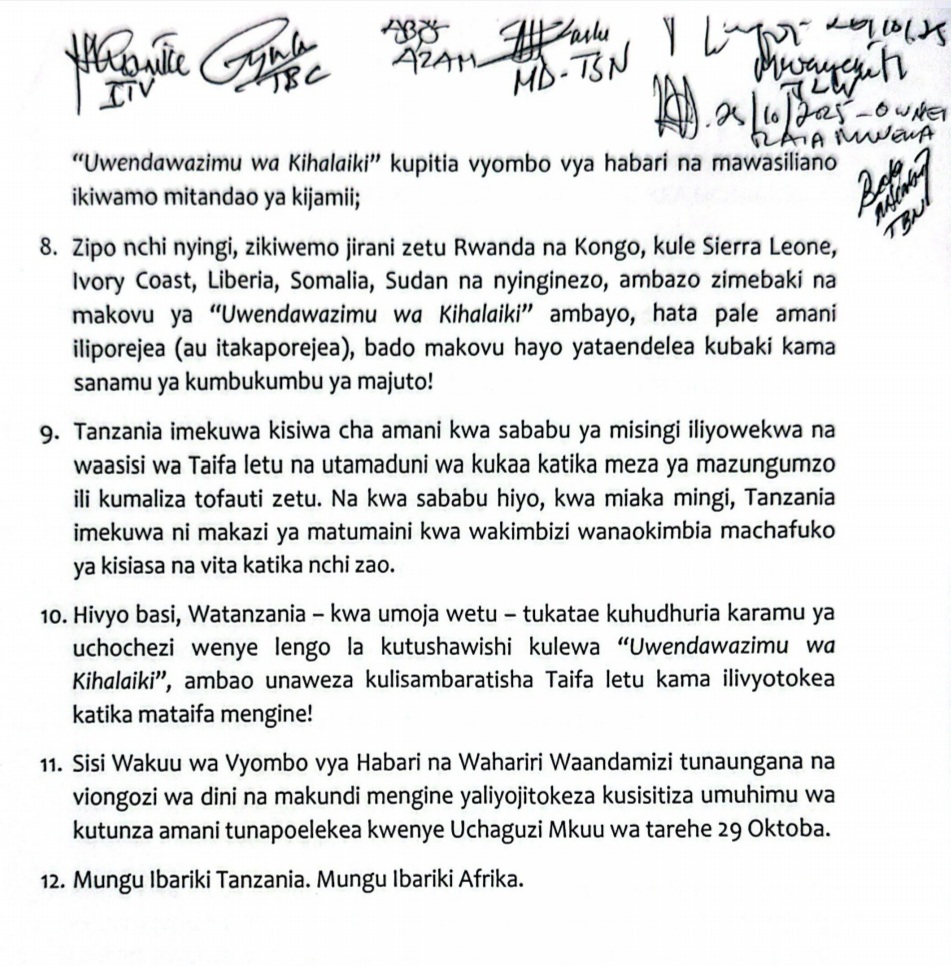 Home LOCAL WAKUU WA VYOMBO VYA HABARI WATOA AZIMIO UMUHIMU WA KUTUNZA AMANI. WAKUU WA VYOMBO VYA HABARI WATOA AZIMIO UMUHIMU WA KUTUNZA AMANI. By ENNA SIMION - October 25, 2025 FacebookTwitterTelegramWhatsAppCopy URL Thank you for reading this post, don't forget to subscribe!