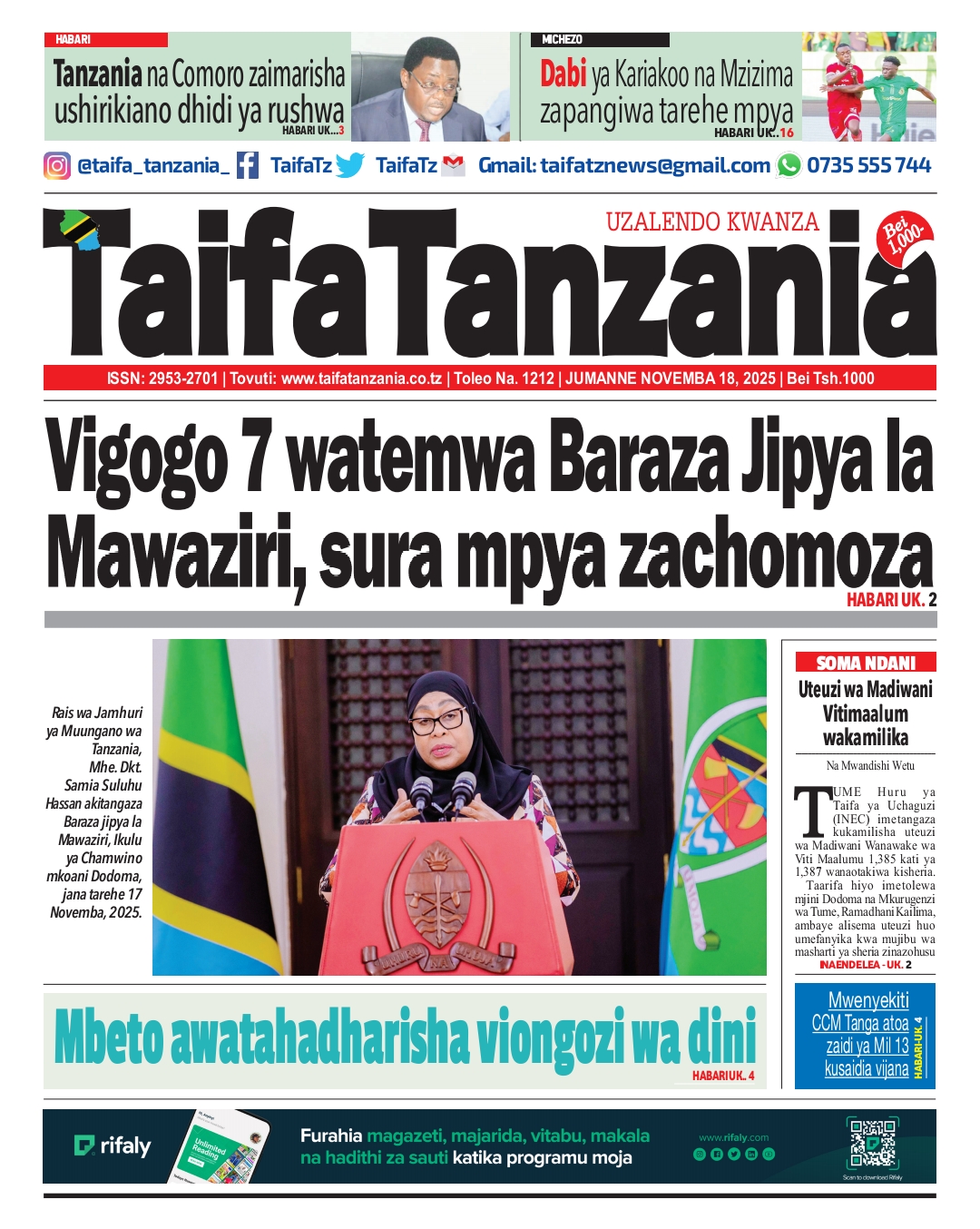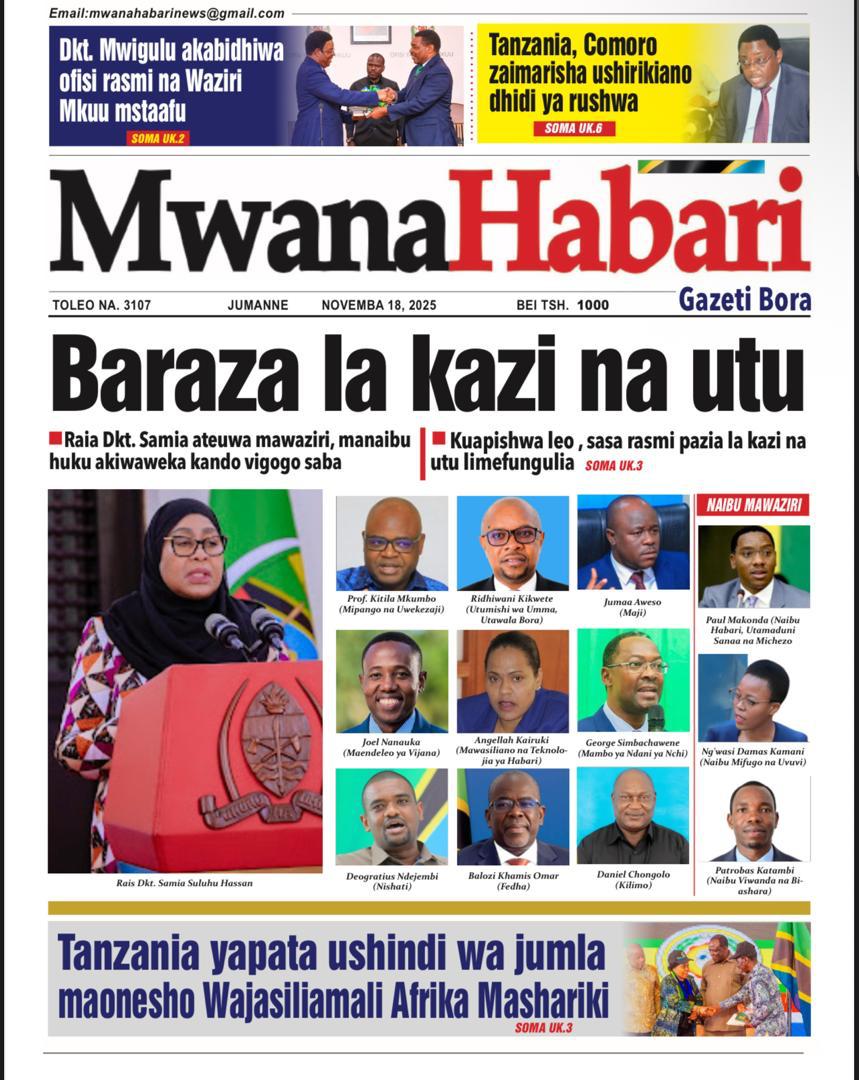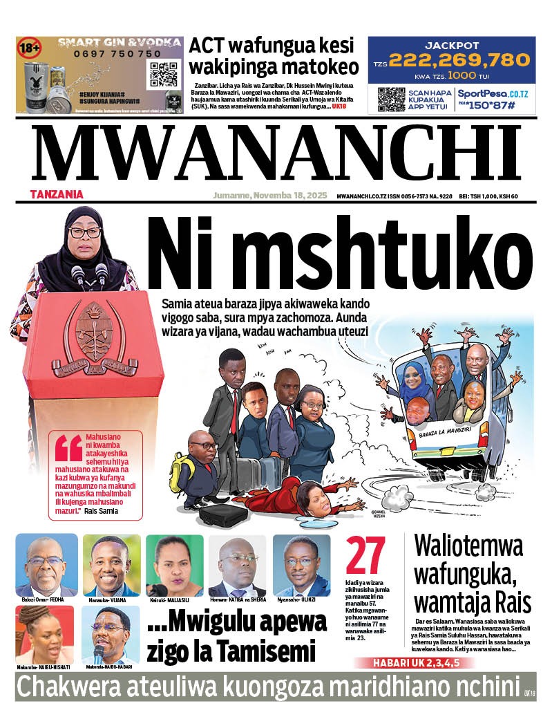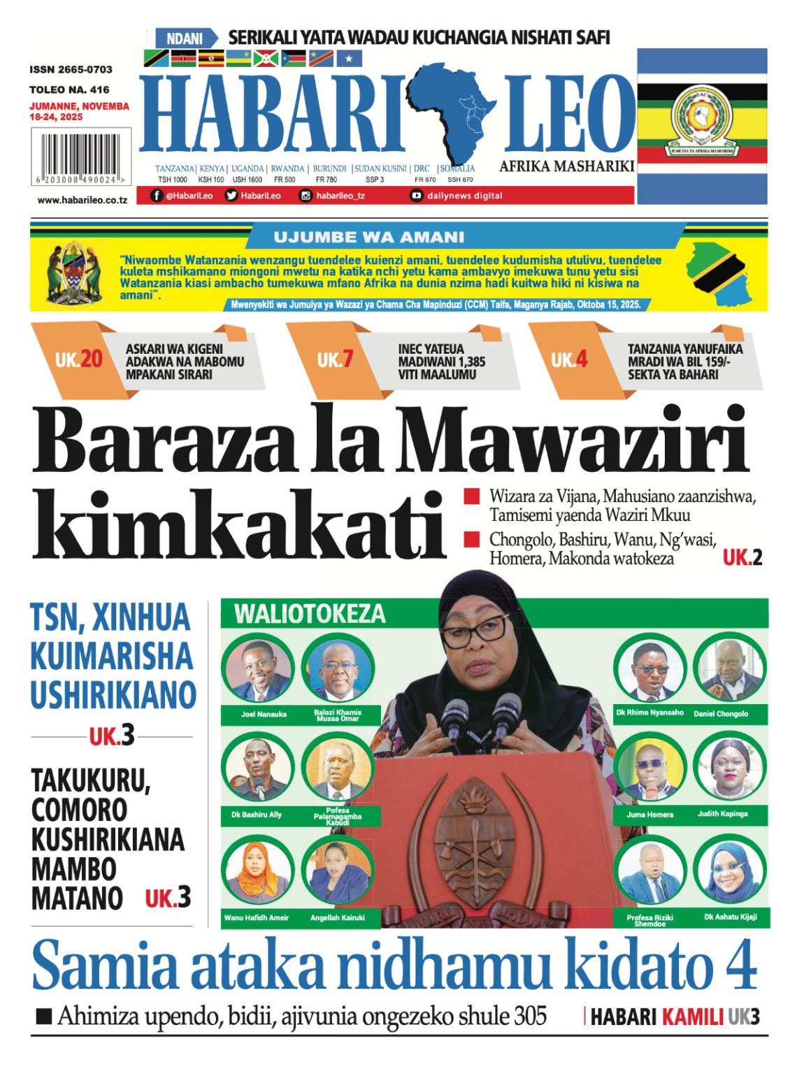 Home NEWSPAPERS HAYA HAPA MAGAZETI YA LEO JUMANNE NOVEMBA 18_2025. HAYA HAPA MAGAZETI YA LEO JUMANNE NOVEMBA 18_2025. By ENNA SIMION - November 18, 2025 FacebookTwitterTelegramWhatsAppCopy URL http://HAYA HAPA MAGAZETI YA LEO JUMANNE NOVEMBA 18_2025.Thank you for reading this post, don't forget to subscribe!