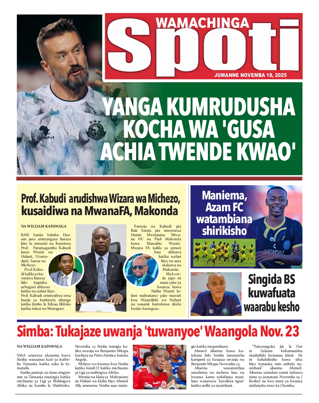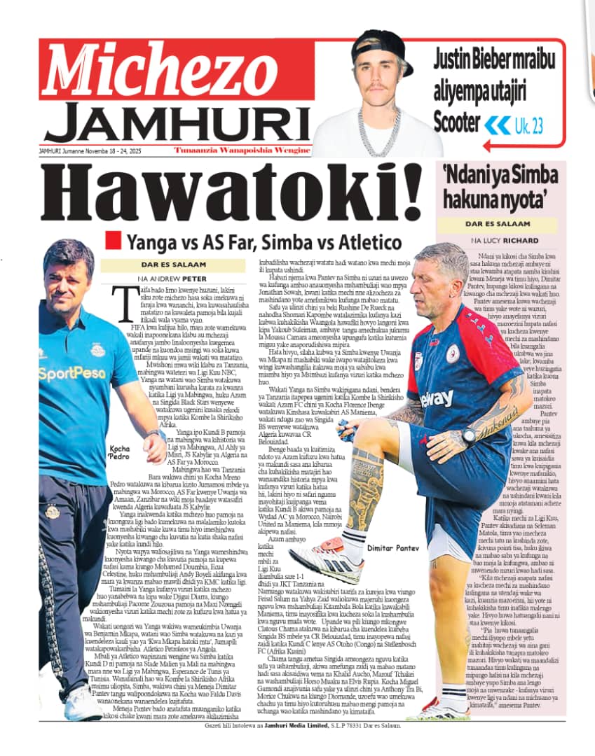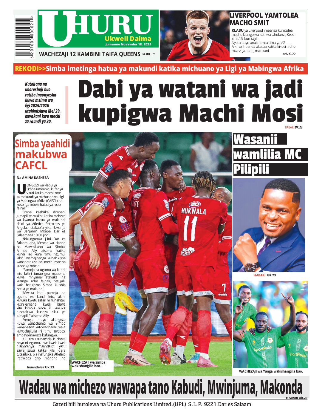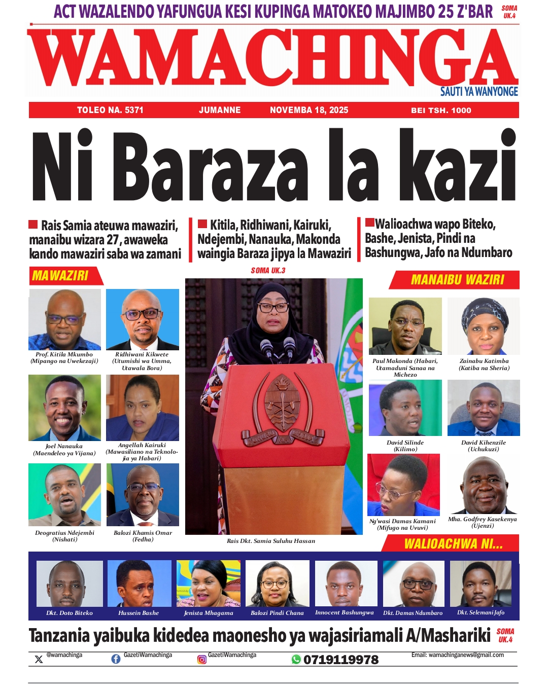 Home NEWSPAPERS HAYA HAPA MAGAZETI YA LEO JUMANNE NOVEMBA 18_2025. HAYA HAPA MAGAZETI YA LEO JUMANNE NOVEMBA 18_2025. By ENNA SIMION - November 18, 2025 FacebookTwitterTelegramWhatsAppCopy URL http://HAYA HAPA MAGAZETI YA LEO JUMANNE NOVEMBA 18_2025.Thank you for reading this post, don't forget to subscribe!