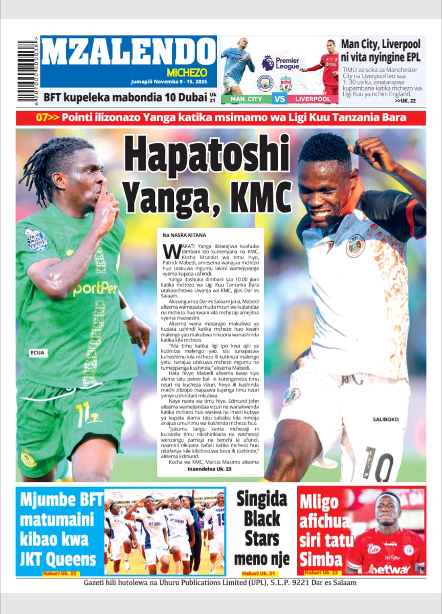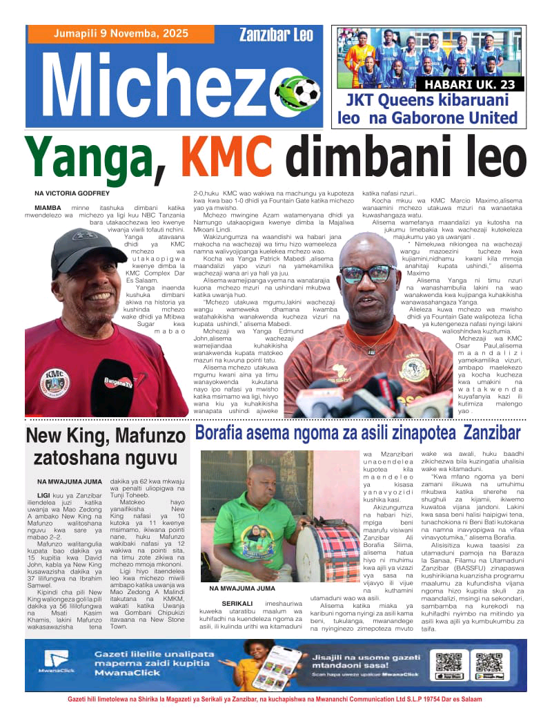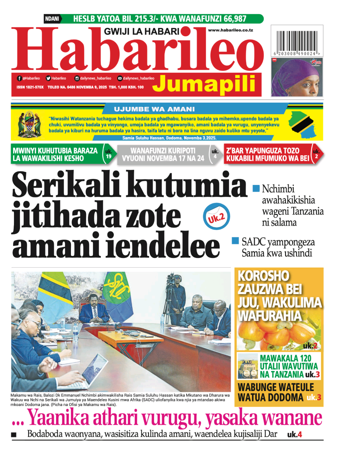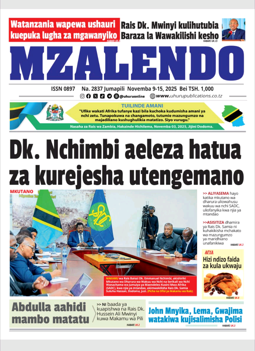 Home NEWSPAPERS HAYA HAPA MAGAZETI YA LEO JUMAPILI NOVEMBA 9_2025. HAYA HAPA MAGAZETI YA LEO JUMAPILI NOVEMBA 9_2025. By ENNA SIMION - November 9, 2025 FacebookTwitterTelegramWhatsAppCopy URL http://HAYA HAPA MAGAZETI YA LEO JUMAPILI NOVEMBA 9_2025.Thank you for reading this post, don't forget to subscribe!
