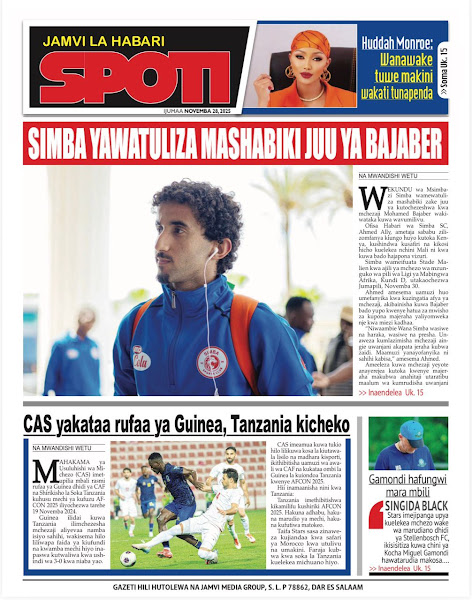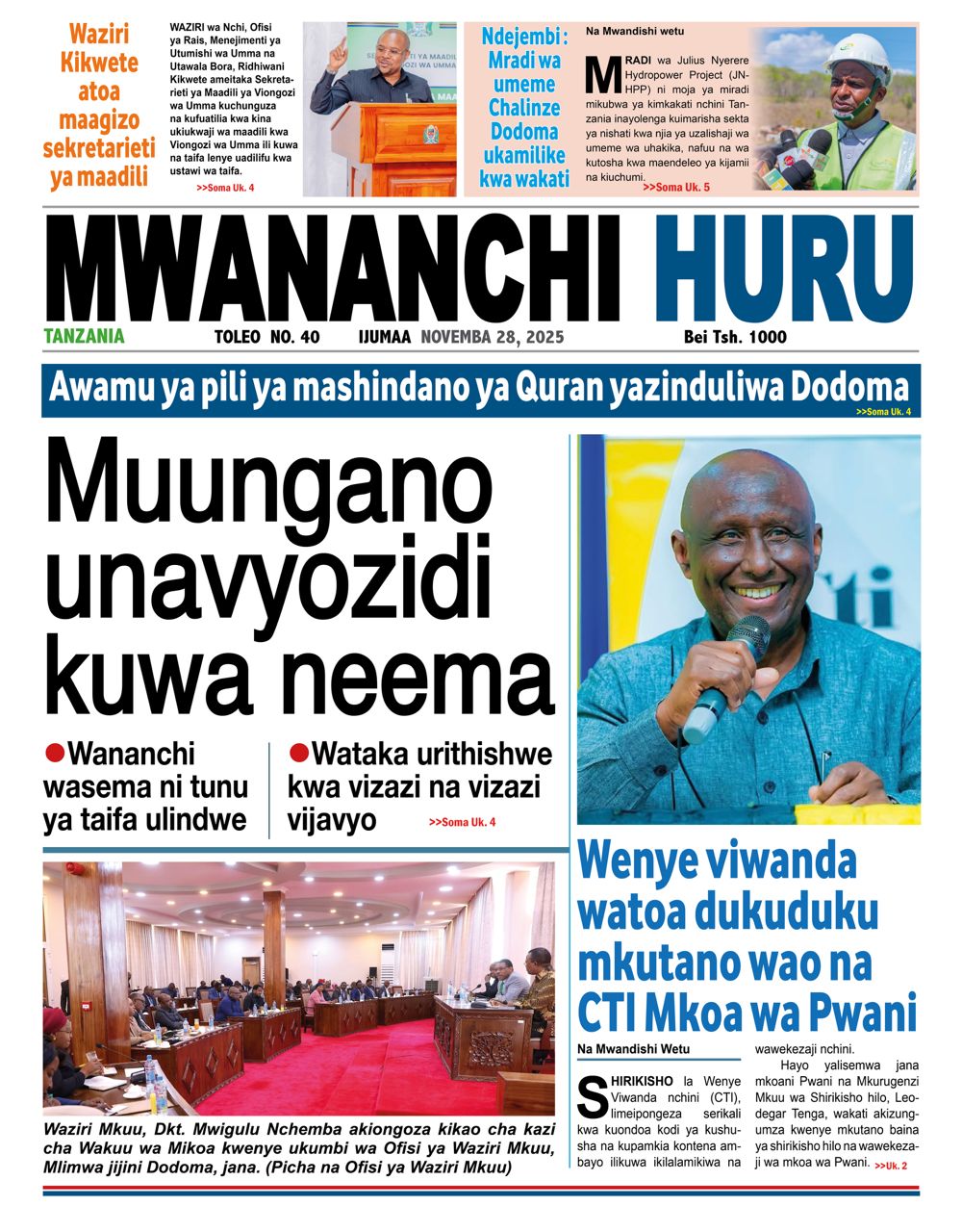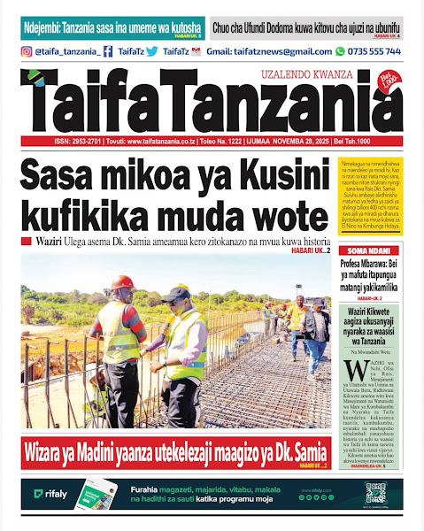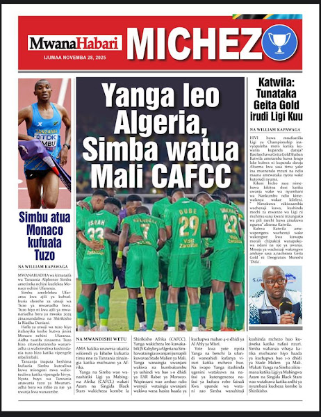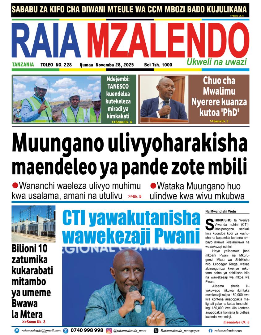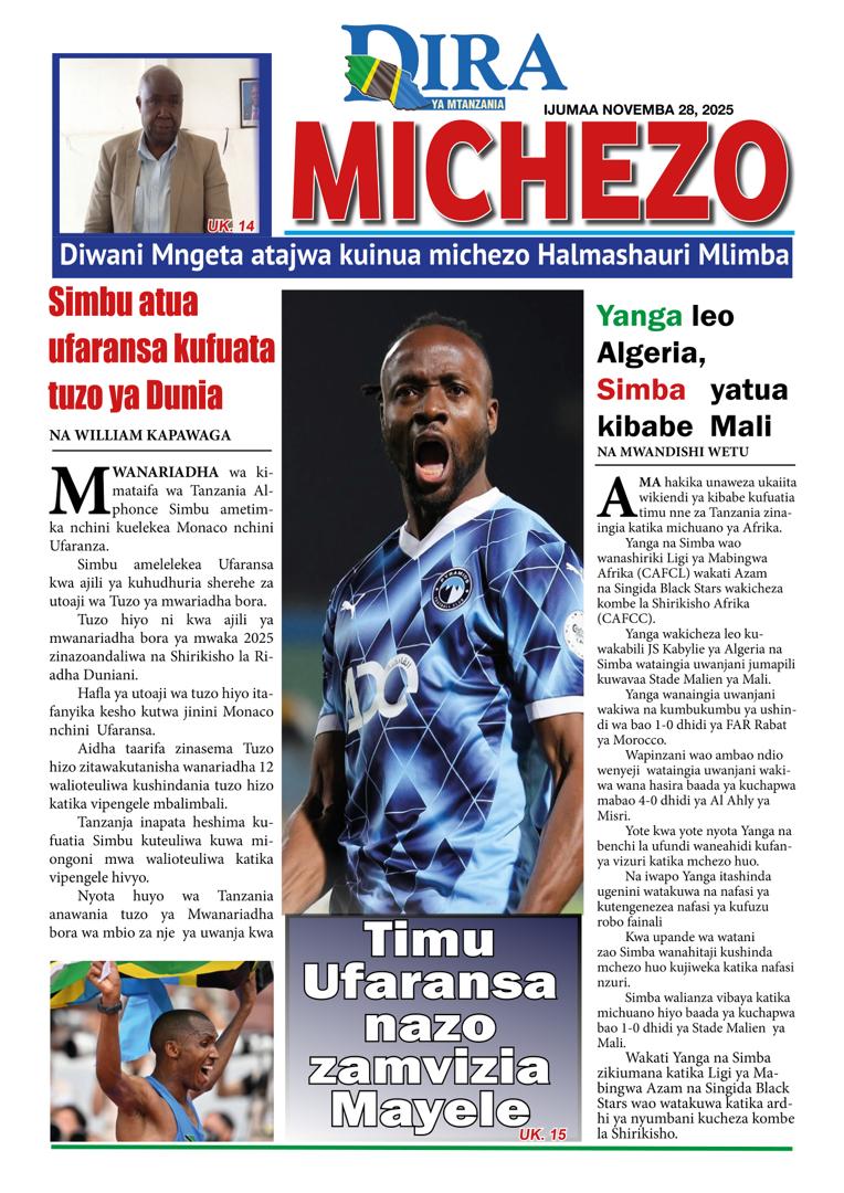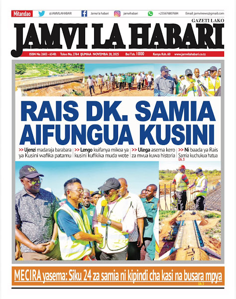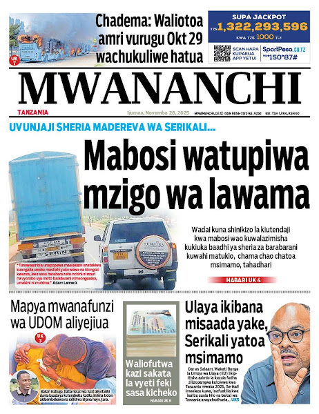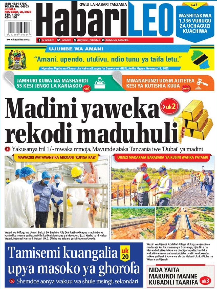 Home NEWSPAPERS HAYA HAPA MAGAZETI YA LEO NOVEMBA 28 _2025. HAYA HAPA MAGAZETI YA LEO NOVEMBA 28 _2025. By ENNA SIMION - November 28, 2025 FacebookTwitterTelegramWhatsAppCopy URL http://HAYA HAPA MAGAZETI YA LEO NOVEMBA 28 _2025.Thank you for reading this post, don't forget to subscribe!