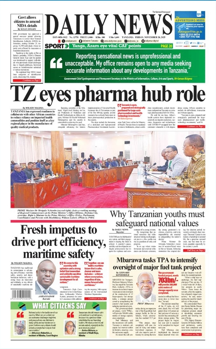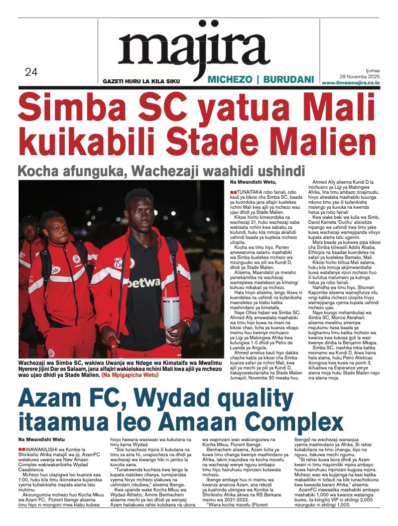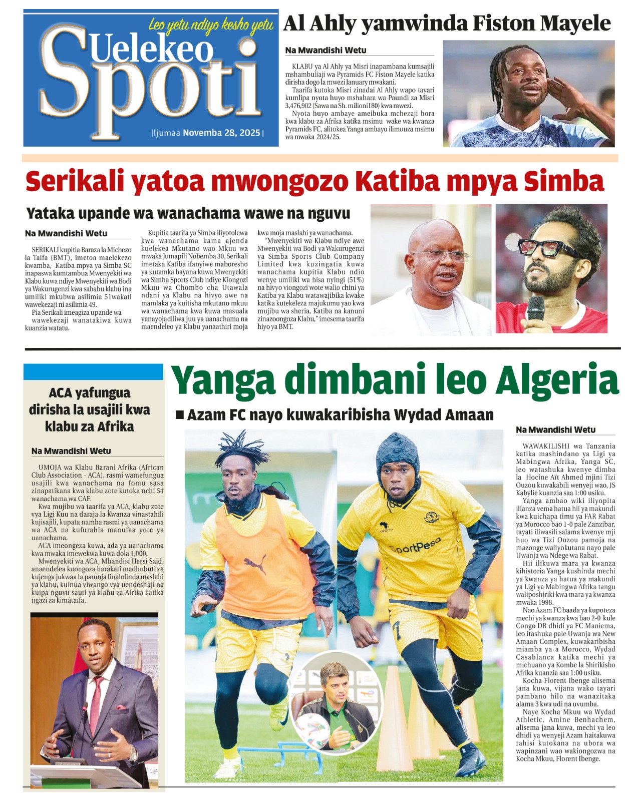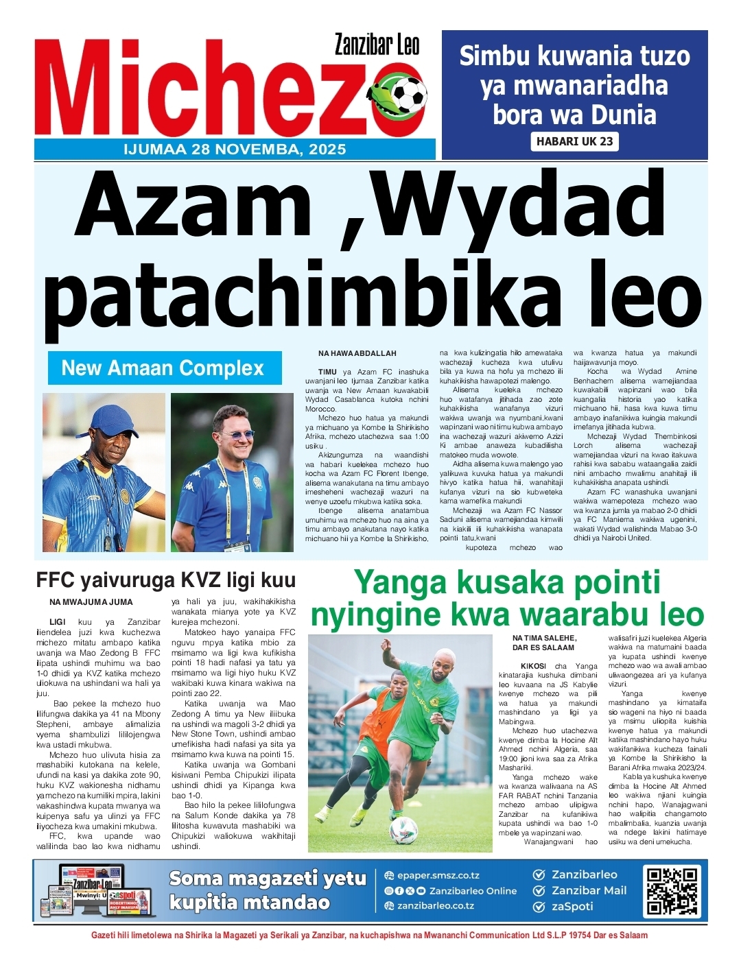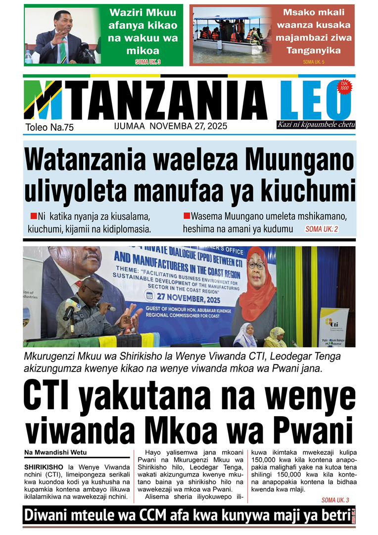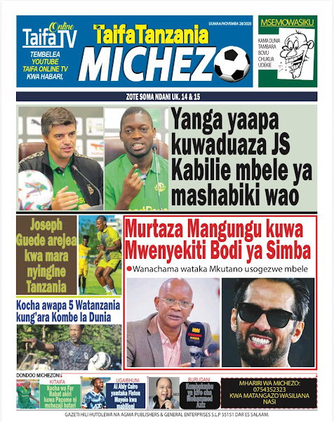 Home NEWSPAPERS HAYA HAPA MAGAZETI YA LEO NOVEMBA 28 _2025. HAYA HAPA MAGAZETI YA LEO NOVEMBA 28 _2025. By ENNA SIMION - November 28, 2025 FacebookTwitterTelegramWhatsAppCopy URL http://HAYA HAPA MAGAZETI YA LEO NOVEMBA 28 _2025.Thank you for reading this post, don't forget to subscribe!