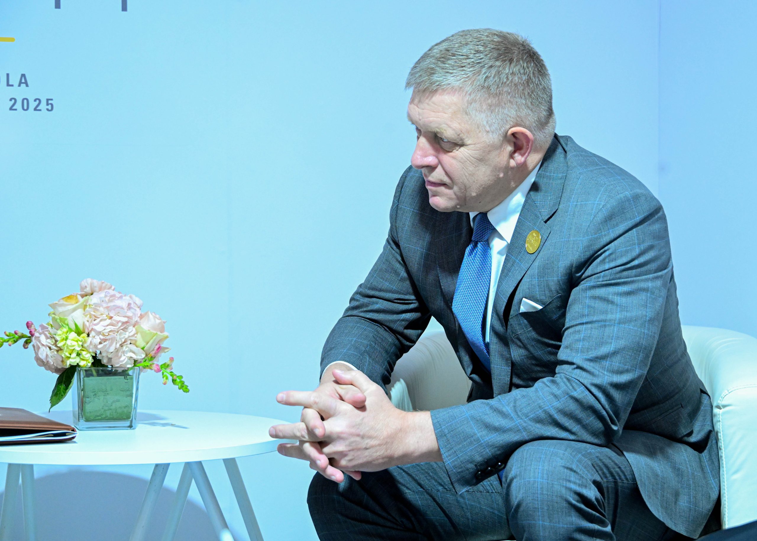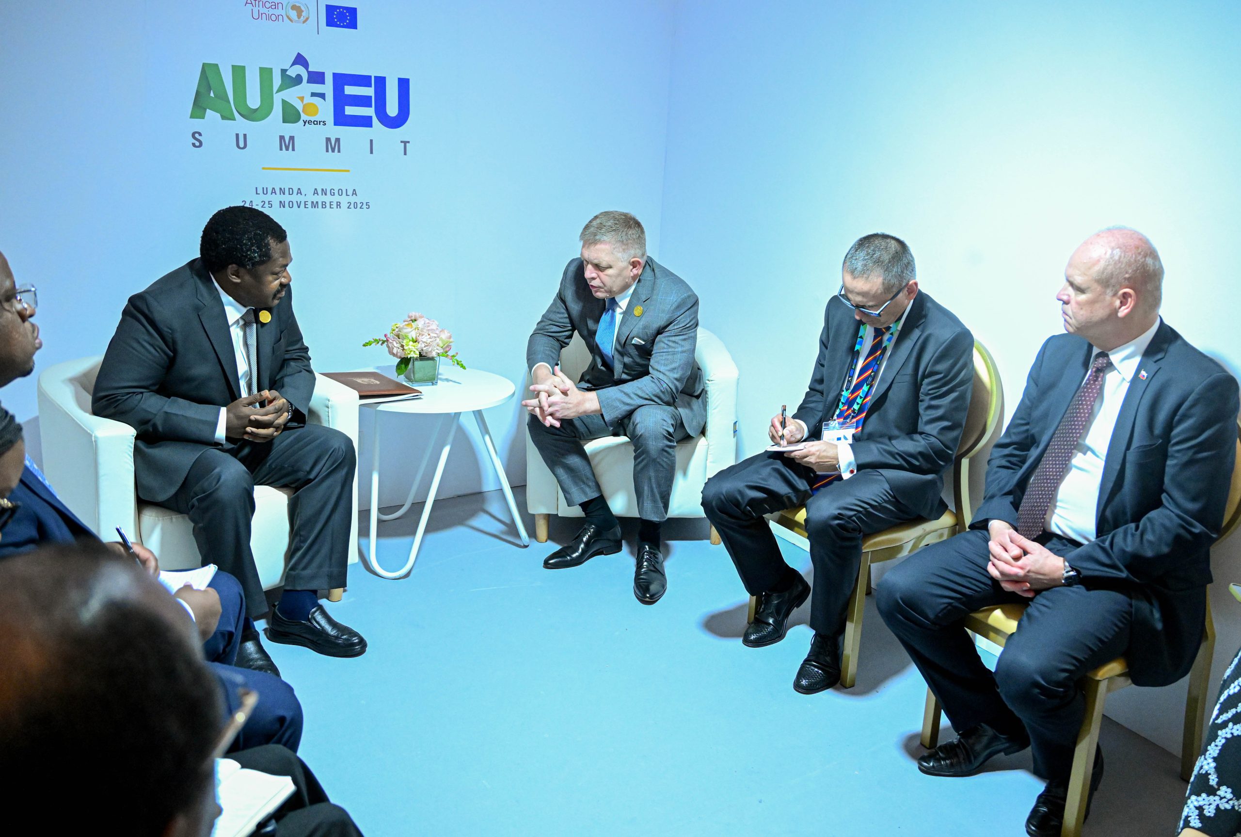 Makamu wa Rais wa Jamhuri ya Muungano wa Tanzania Mhe.Balozi Dkt. Emmanuel Nchimbi akifanya mazungumzo na Waziri Mkuu wa Jamhuri ya Slovakia Mhe. Robert Fico, kando ya Mkutano wa 7 wa Viongozi wa Umoja wa Afrika na Umoja wa Ulaya (AU-EU Summit), unaofanyika Jijini Luanda nchini Angola.