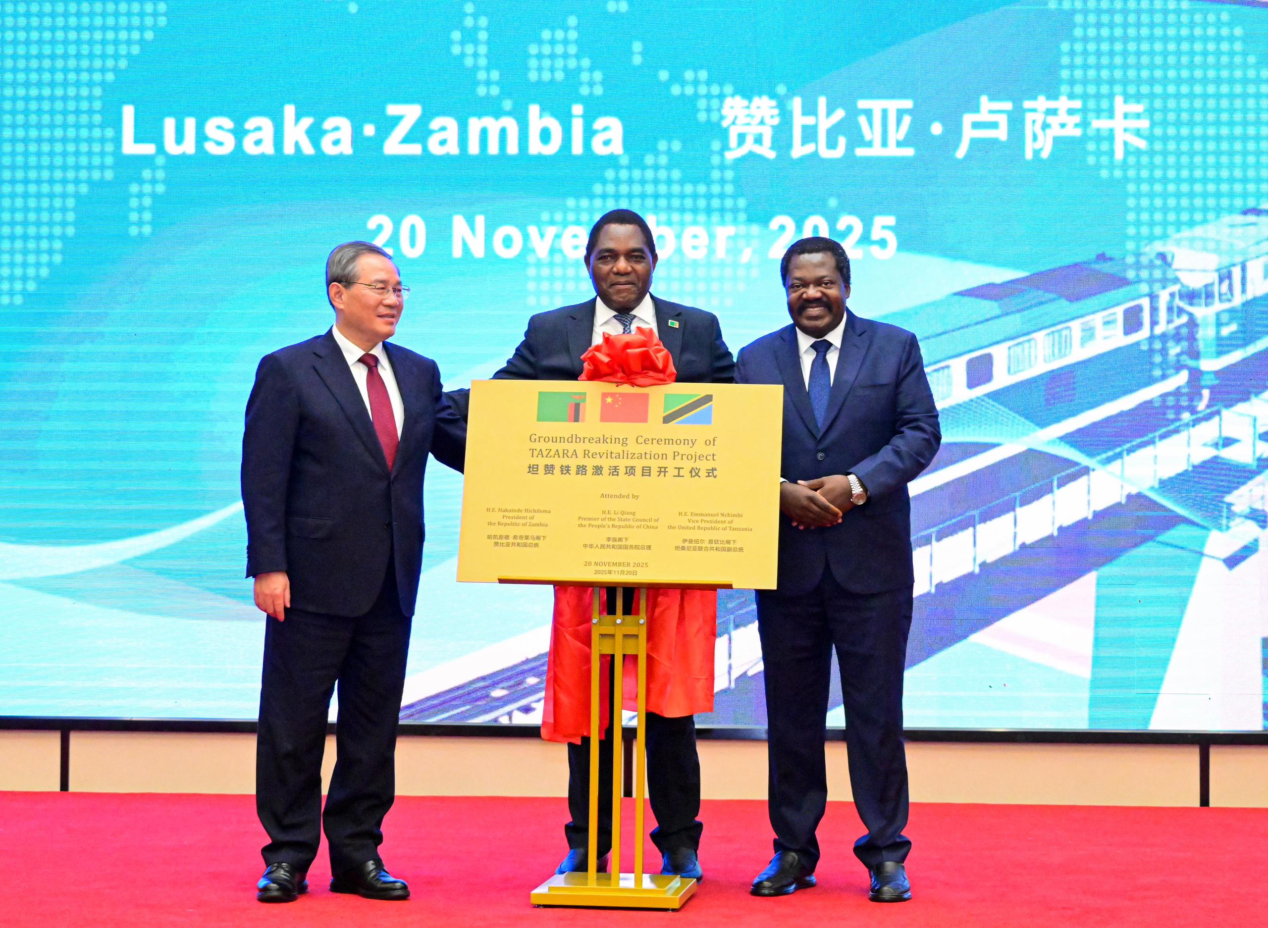 Hafla hiyo imehudhuriwa na Rais wa Jamhuri ya Zambia Mhe. Hakainde Hichilema pamoja na Waziri Mkuu wa Jamhuri ya Watu wa China Mhe. Li Qiang.