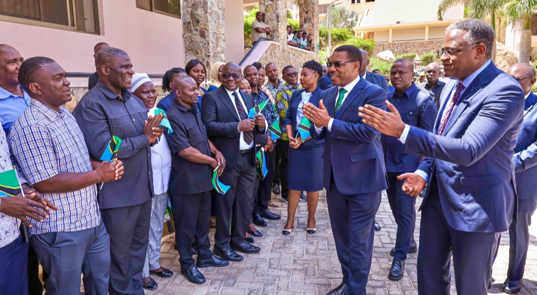 Waziri Mkuu Mteule Dkt. Mwigulu Lameck Nchemba akipokelewa na watumishi wa Ofisi ya Waziri Mkuu, kwenye makazi ya Waziri Mkuu Mlimwa jijini Dodoma Novemba 13, 2025.