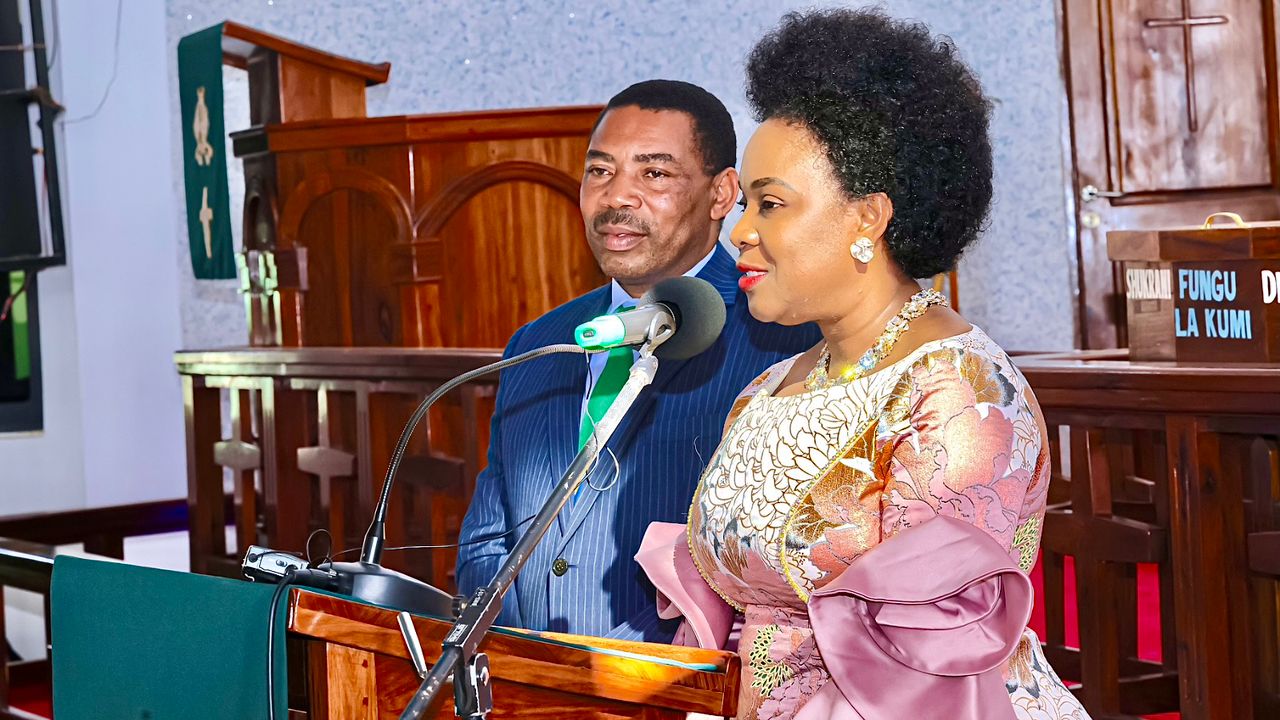 Mheshimiwa Dkt. Mwigulu ameambatana na Mwenza wake, Mama Neema Mwigulu Nchemba, katika ibada hiyo.