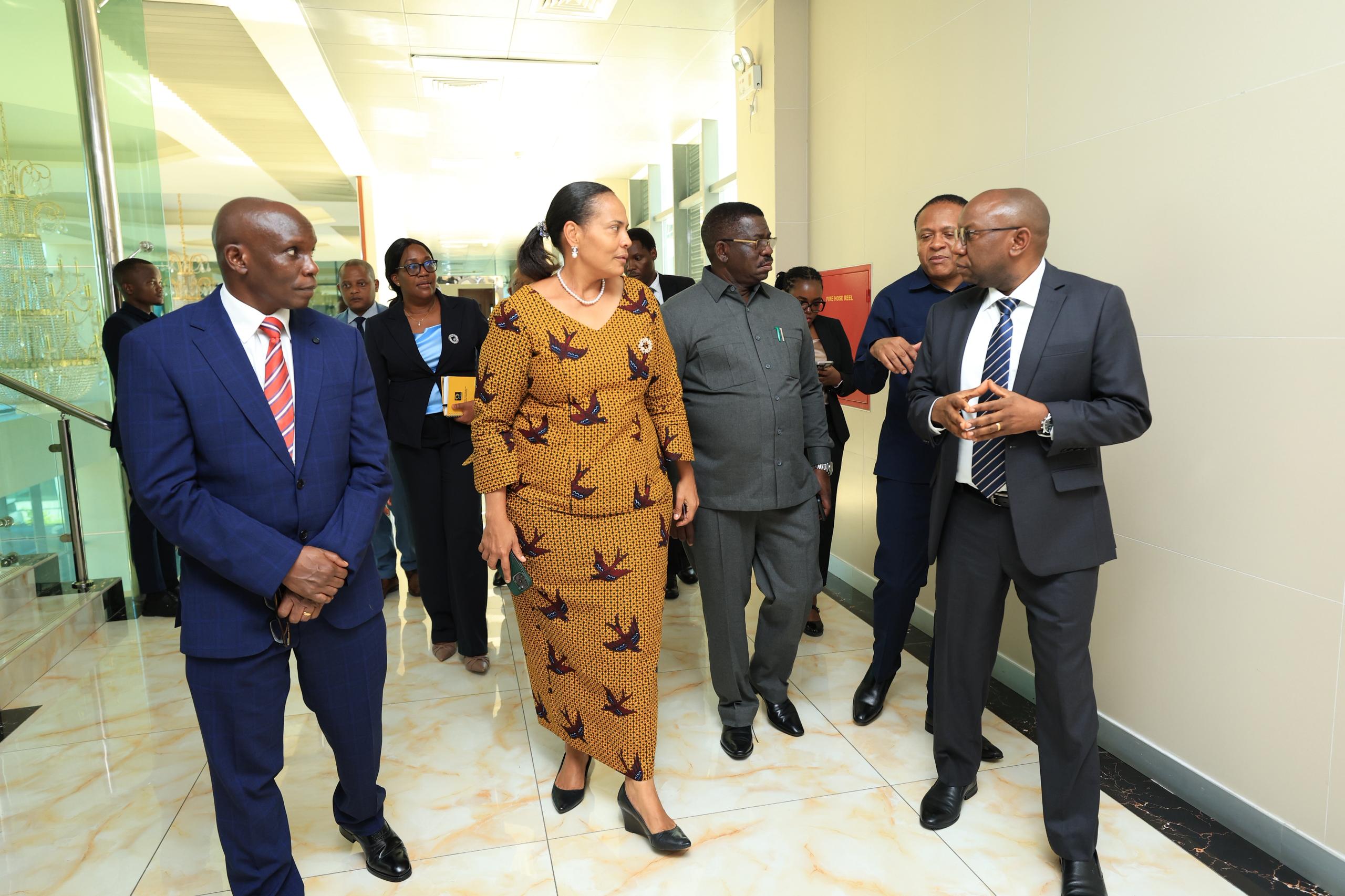 Akiambatana na Naibu Waziri, Mhe. Dkt. Switbert Zacharia Mkama (Mb), Naibu Katibu Mkuu, Bw. Nicolaus Merinyo Mkapa, pamoja na menejimenti ya wizara, Mhe. Kairuki alipokea taarifa ya utendaji iliyowasilishwa na Mkurugenzi Mtendaji wa TTCL, CPA Moremi Marwa.