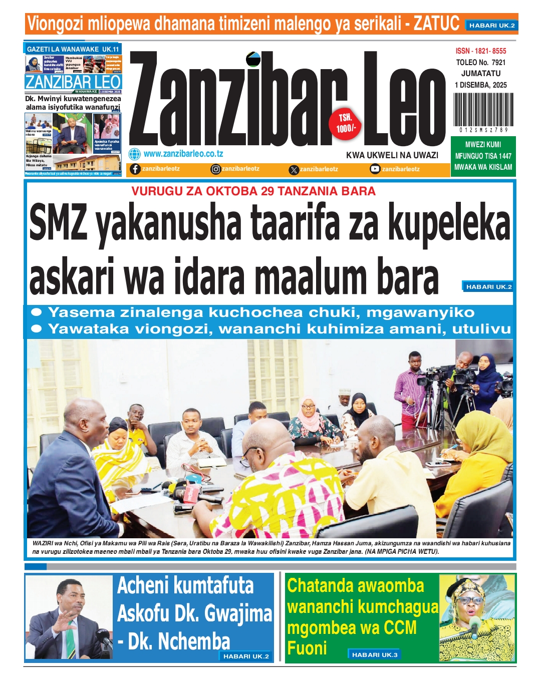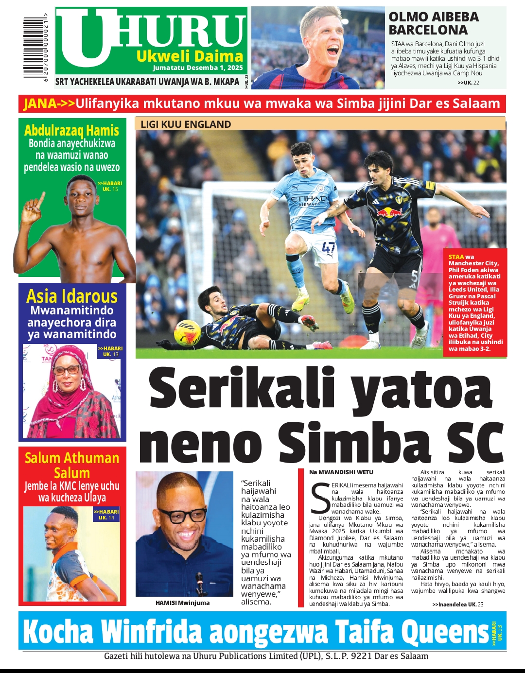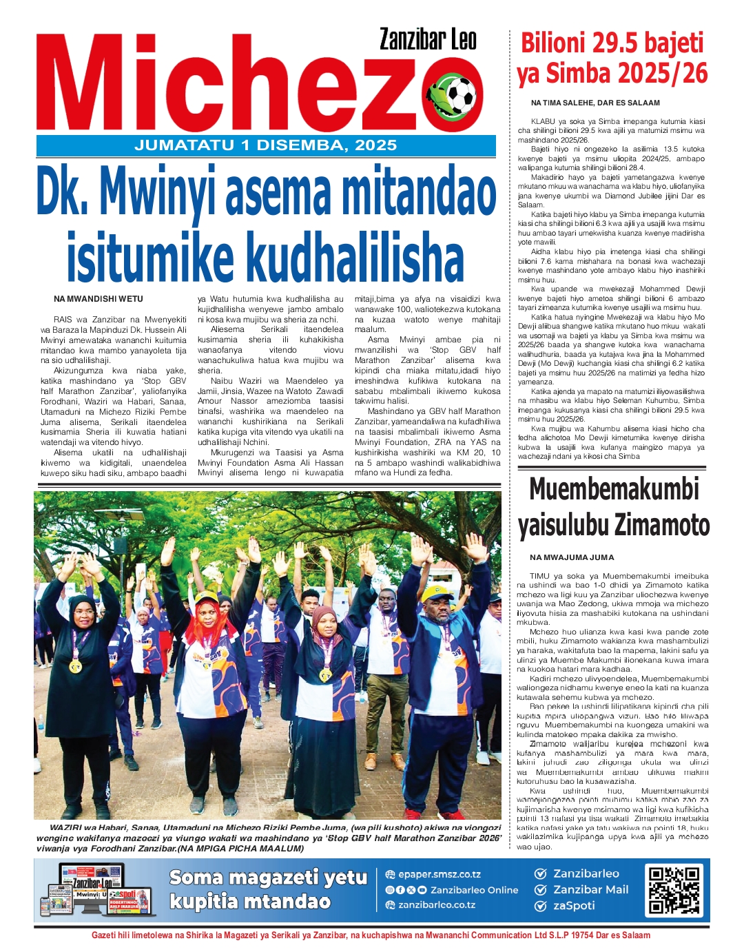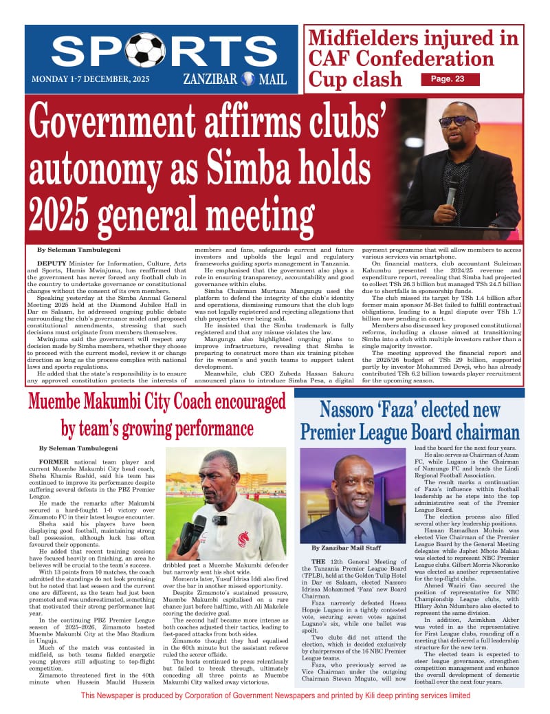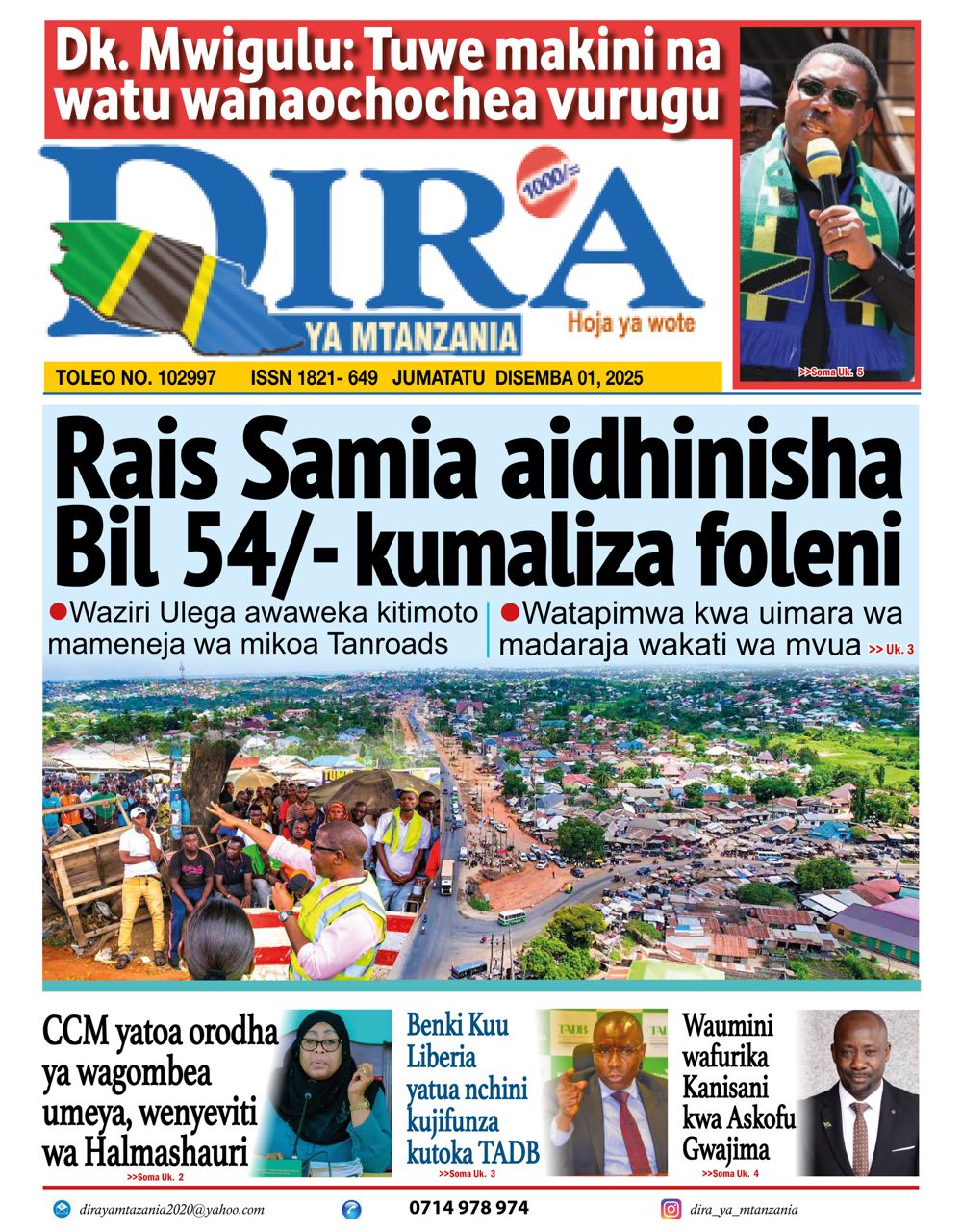 Home NEWSPAPERS HAYA HAPA MAGAZETI YA LEO DISEMBA 01_2025. HAYA HAPA MAGAZETI YA LEO DISEMBA 01_2025. By ENNA SIMION - December 1, 2025 FacebookTwitterTelegramWhatsAppCopy URL http://HAYA HAPA MAGAZETI YA LEO DISEMBA 01_2025.Thank you for reading this post, don't forget to subscribe!