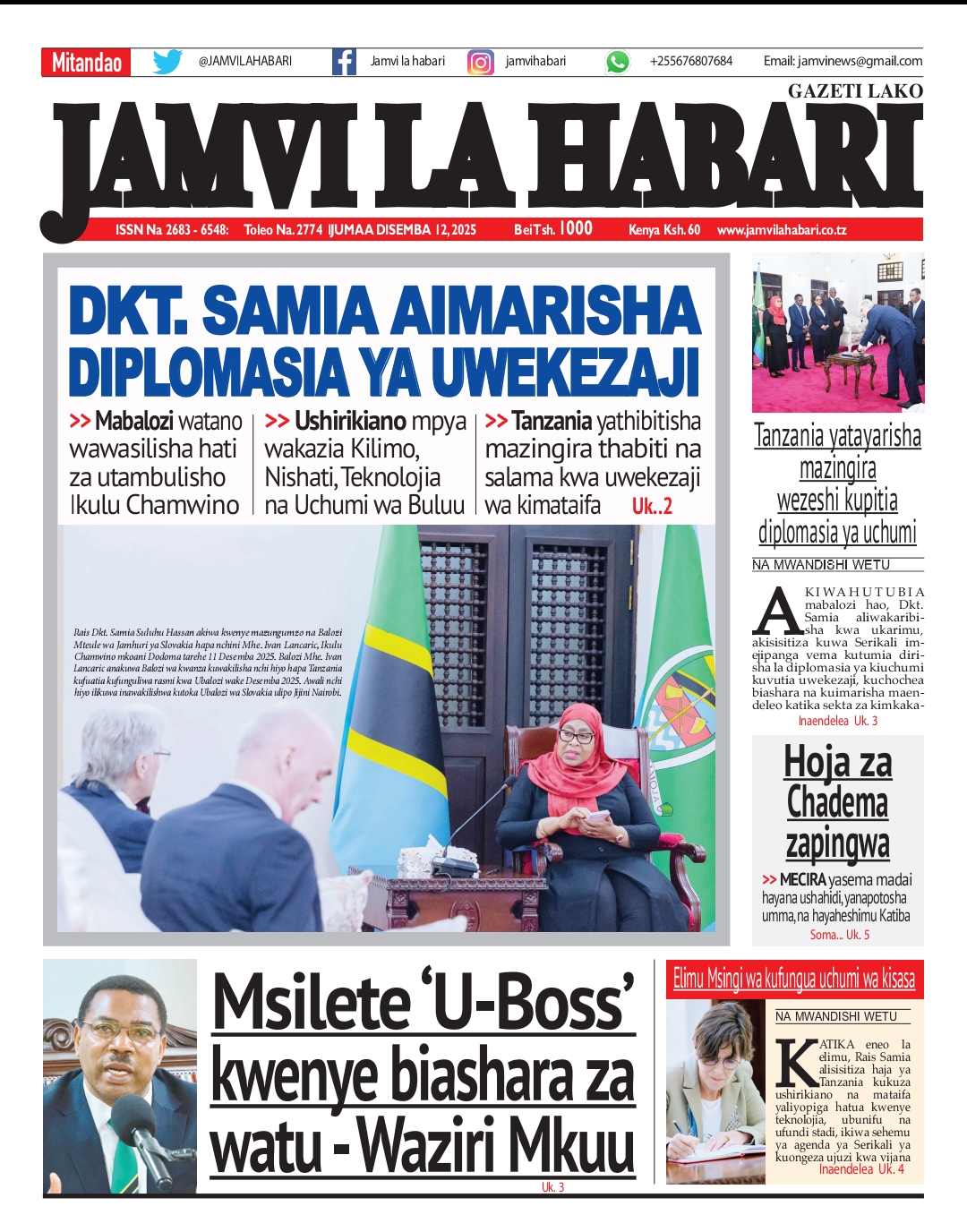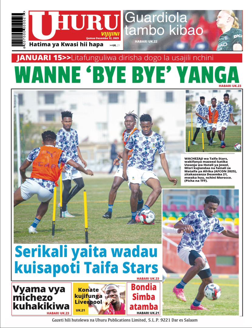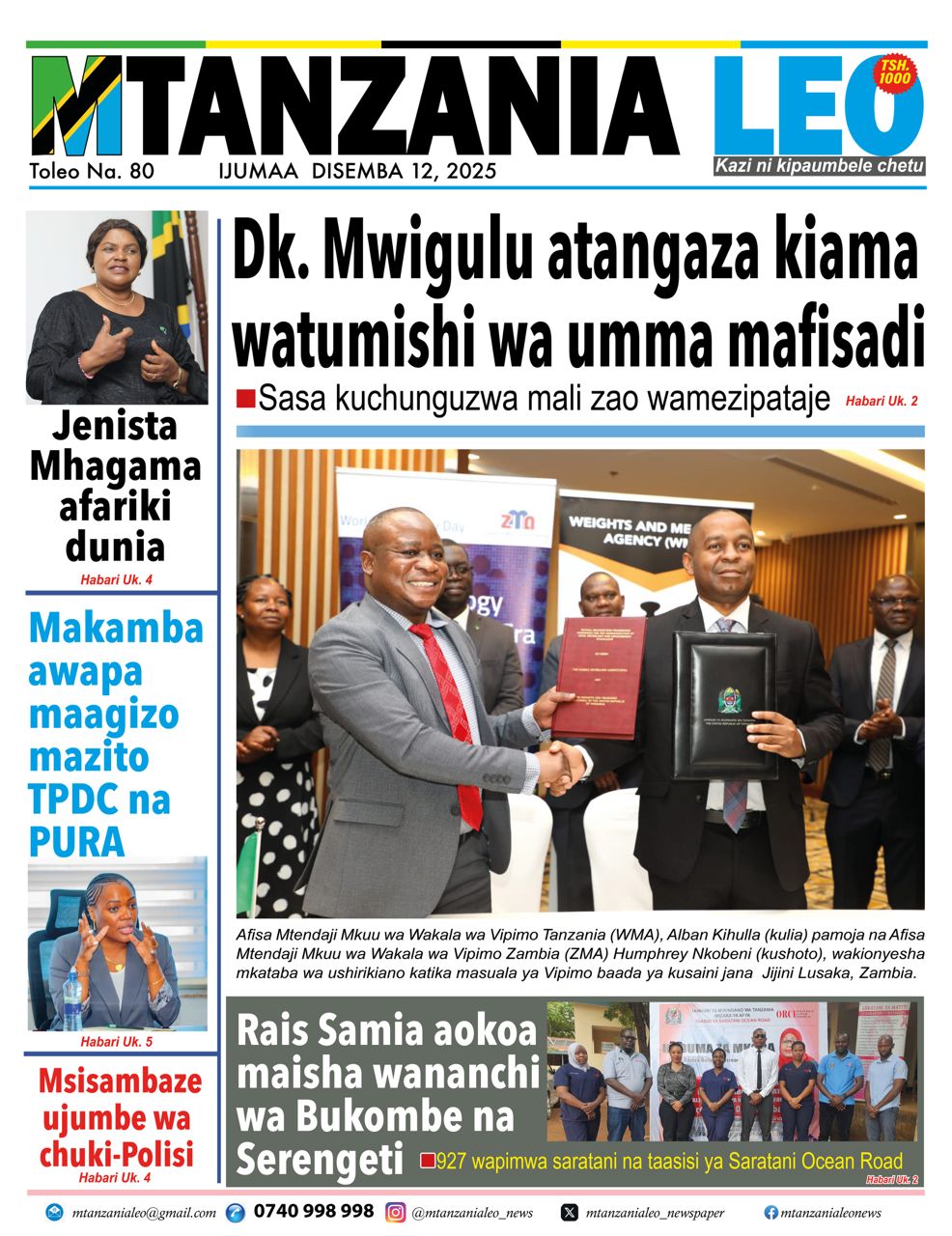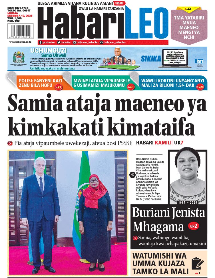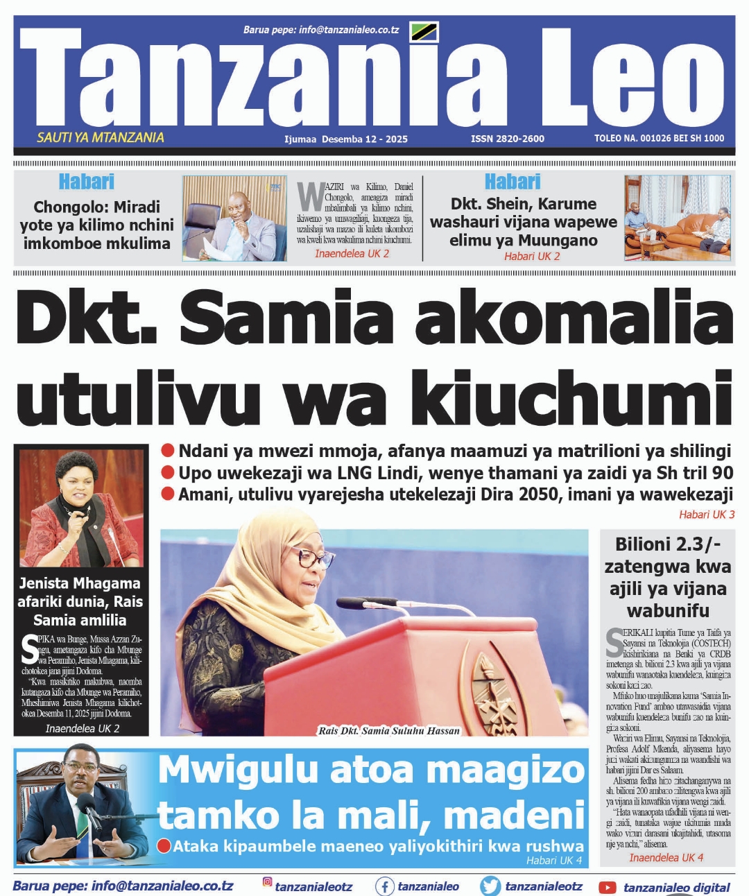 Home NEWSPAPERS HAYA HAPA MAGAZETI YA LEO IJUMAA DISEMBA 12_2025. HAYA HAPA MAGAZETI YA LEO IJUMAA DISEMBA 12_2025. By ENNA SIMION - December 12, 2025 FacebookTwitterTelegramWhatsAppCopy URL http://HAYA HAPA MAGAZETI YA LEO IJUMAA DISEMBA 12_2025.Thank you for reading this post, don't forget to subscribe!