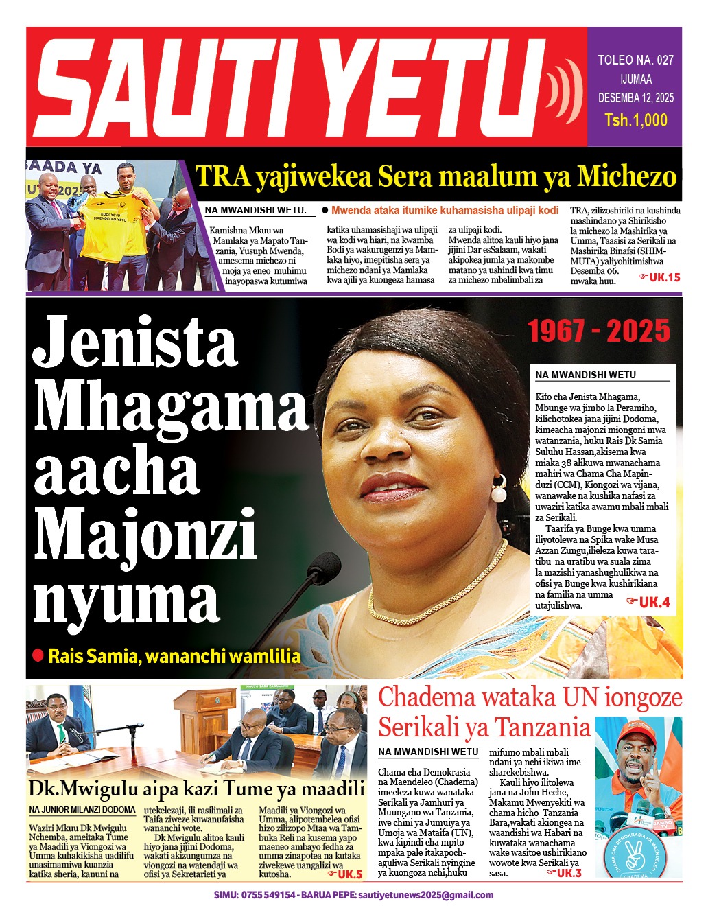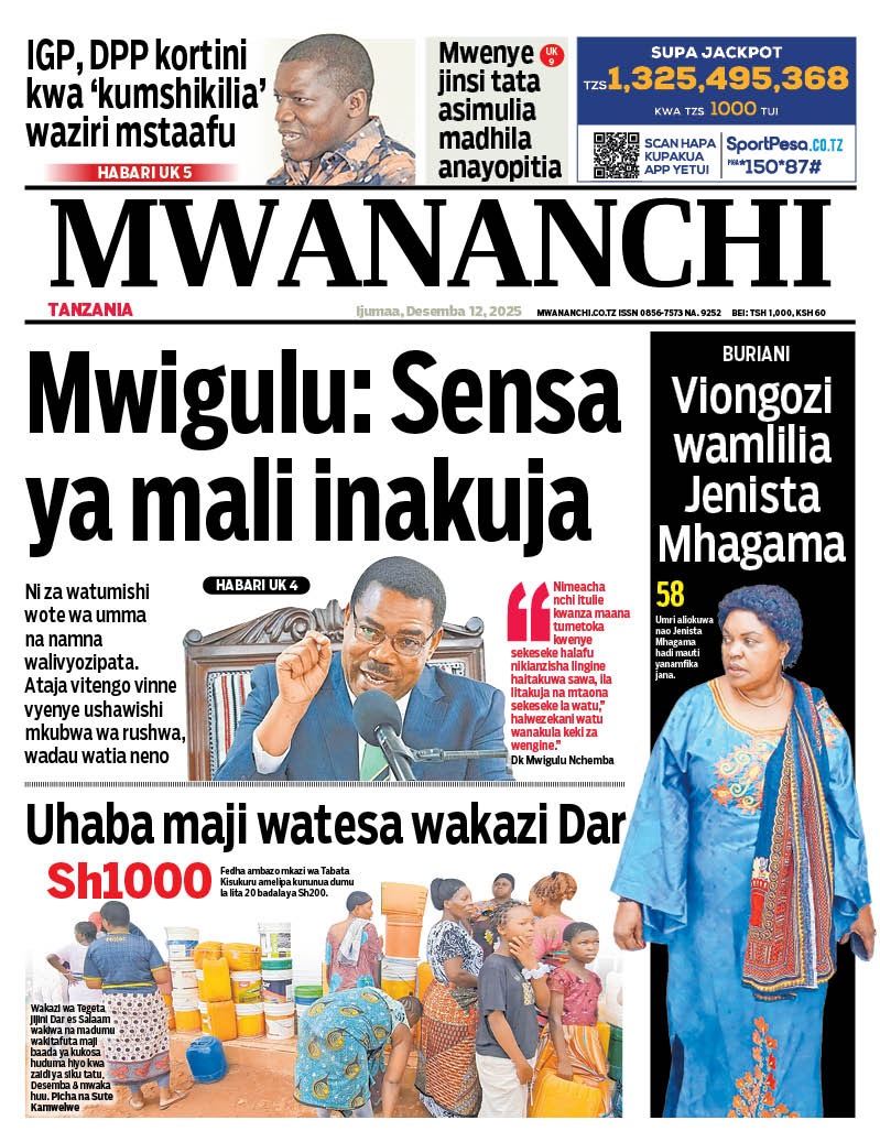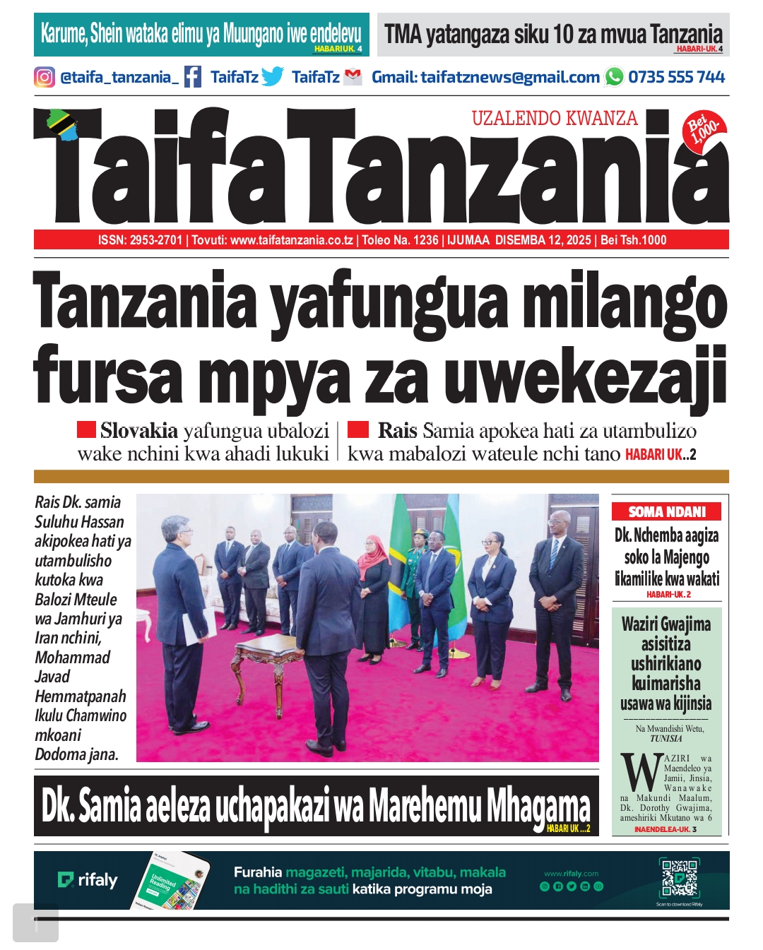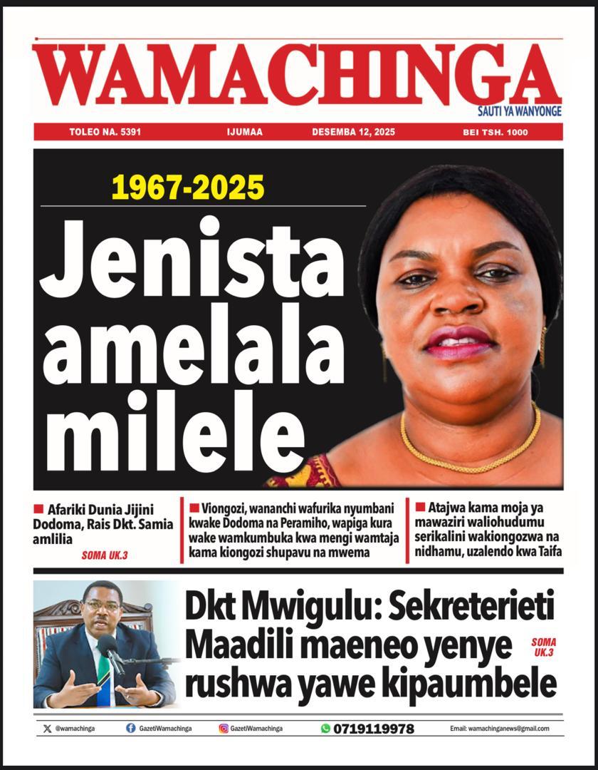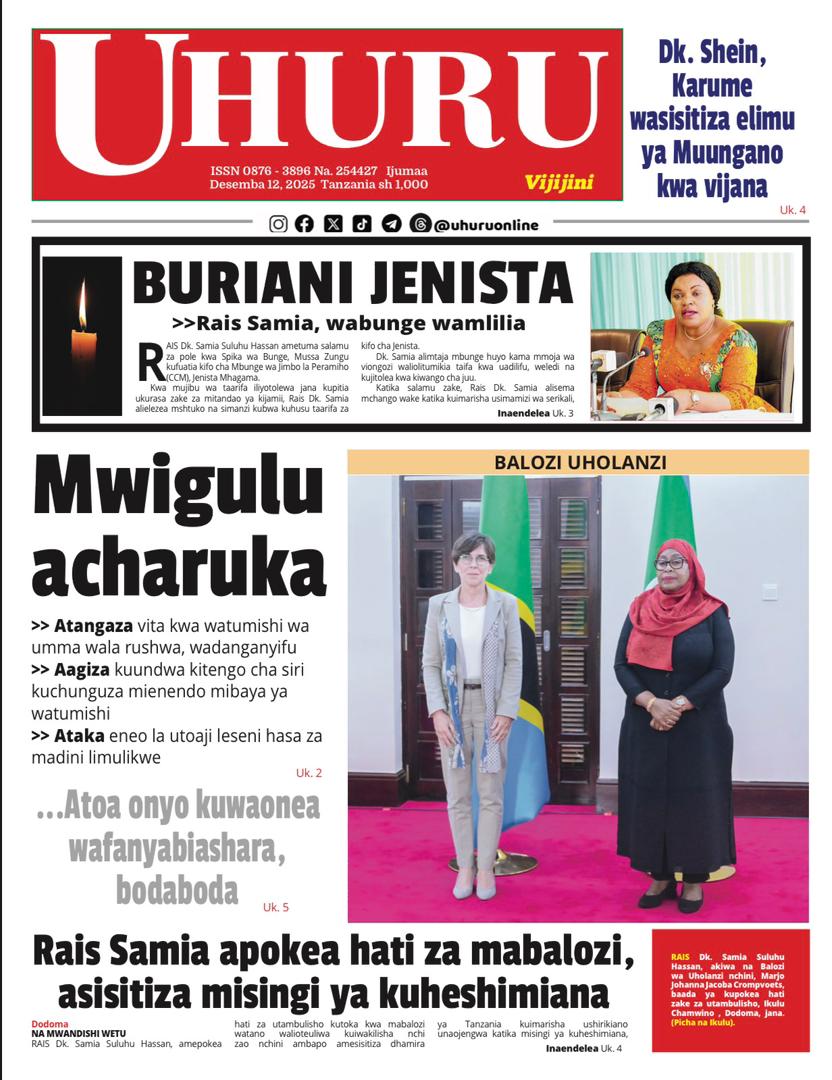 Home NEWSPAPERS HAYA HAPA MAGAZETI YA LEO IJUMAA DISEMBA 12_2025. HAYA HAPA MAGAZETI YA LEO IJUMAA DISEMBA 12_2025. By ENNA SIMION - December 12, 2025 FacebookTwitterTelegramWhatsAppCopy URL http://HAYA HAPA MAGAZETI YA LEO IJUMAA DISEMBA 12_2025.Thank you for reading this post, don't forget to subscribe!